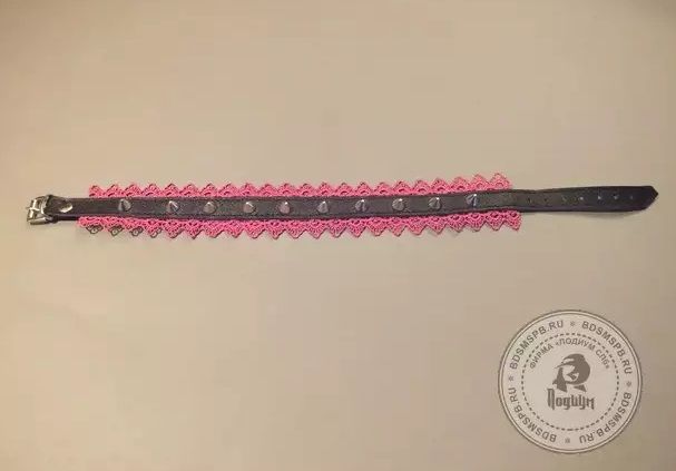 Чёрный ошейник с цикламеновым кружевом и шипами
