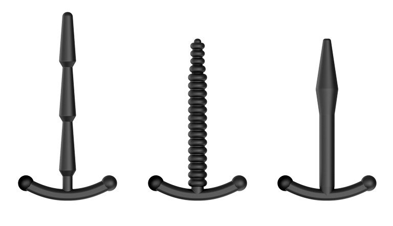 Один плаг имеет хорошо заметный кончик, напоминающий по форме наконечник стрелы, а второй обладает гофрированным рельефом, активно воздействующих на стенки уретры при движении. Основание изогнутое, удобное для удержания в пальцах. Длина первого дилятора - 7,5 см., диаметр 0,5 см.