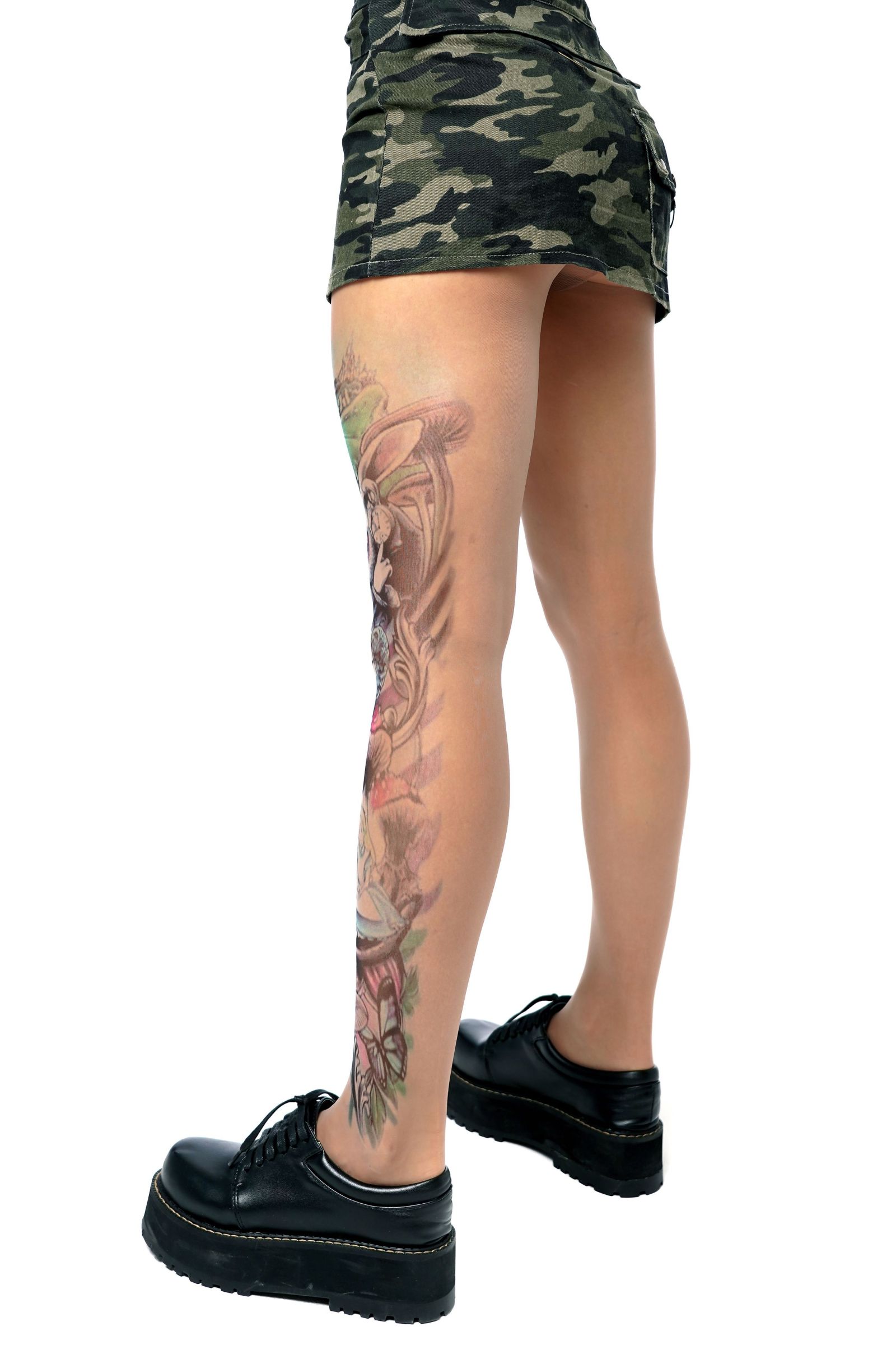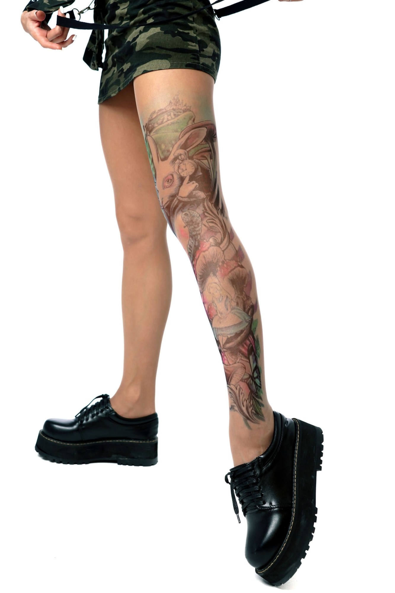 Колготки с принтом в виде героев «Алисы в Стране чудес». Принт не стирается, не выгорает со временем. Можно стирать в стиральной машине. Крепкие, подойдут на рост от 145 до 180 см. Плотность - 40 ден.