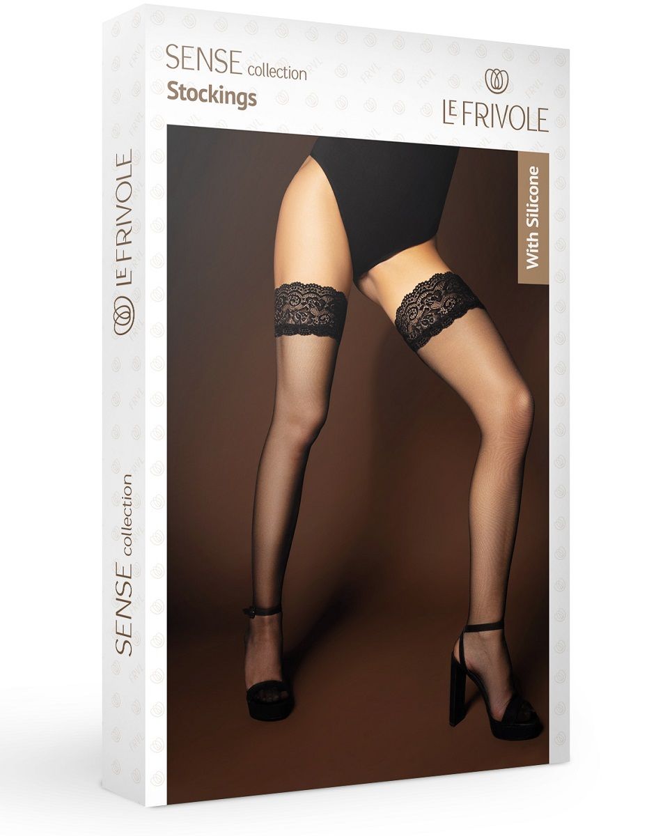 Черные матовые капроновые чулки с кружевом и двойной силиконовой лентой – тот элемент одежды, который должен быть у каждой женщины. Кружево нежное и приятное на ощупь, а ленты силикона широкие, поэтому их будет очень комфортно носить. Благодаря особому плетению затемненные полосочки, если они появятся, можно убрать, поочередно потянув материал сначала по горизонтали, а потом по вертикали несколько раз. Плотность - 20 ден.
