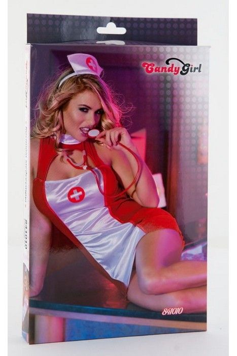 ОписаниеЭффектное платье с открытой спиной, воротник-стойка на липучке . Ободок и игрушечный стетоскоп в комплекте. Стринги в комплект не входят. В комплекте: платье, головной убор, стетоскоп.