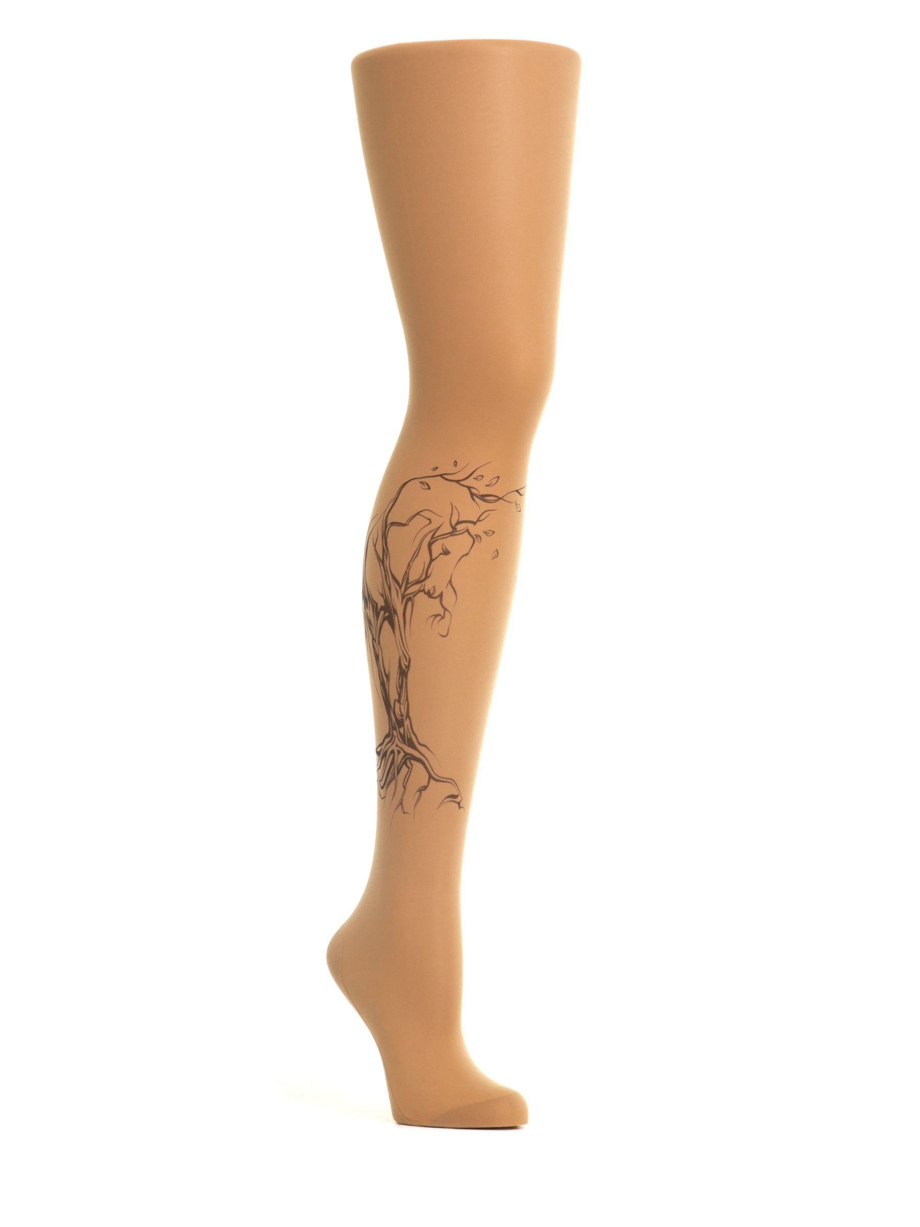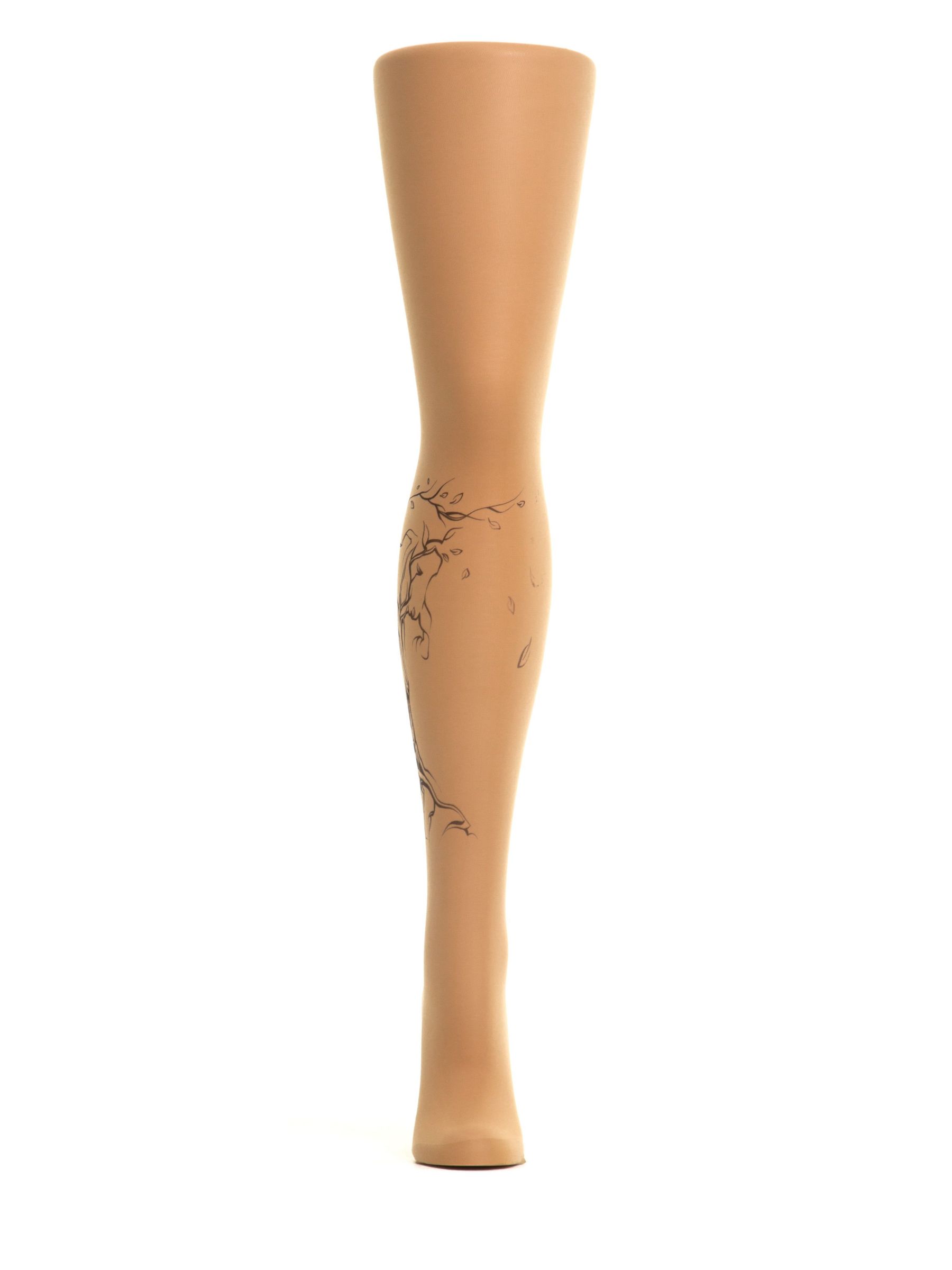 Колготки с принтом в виде дерева без листвы