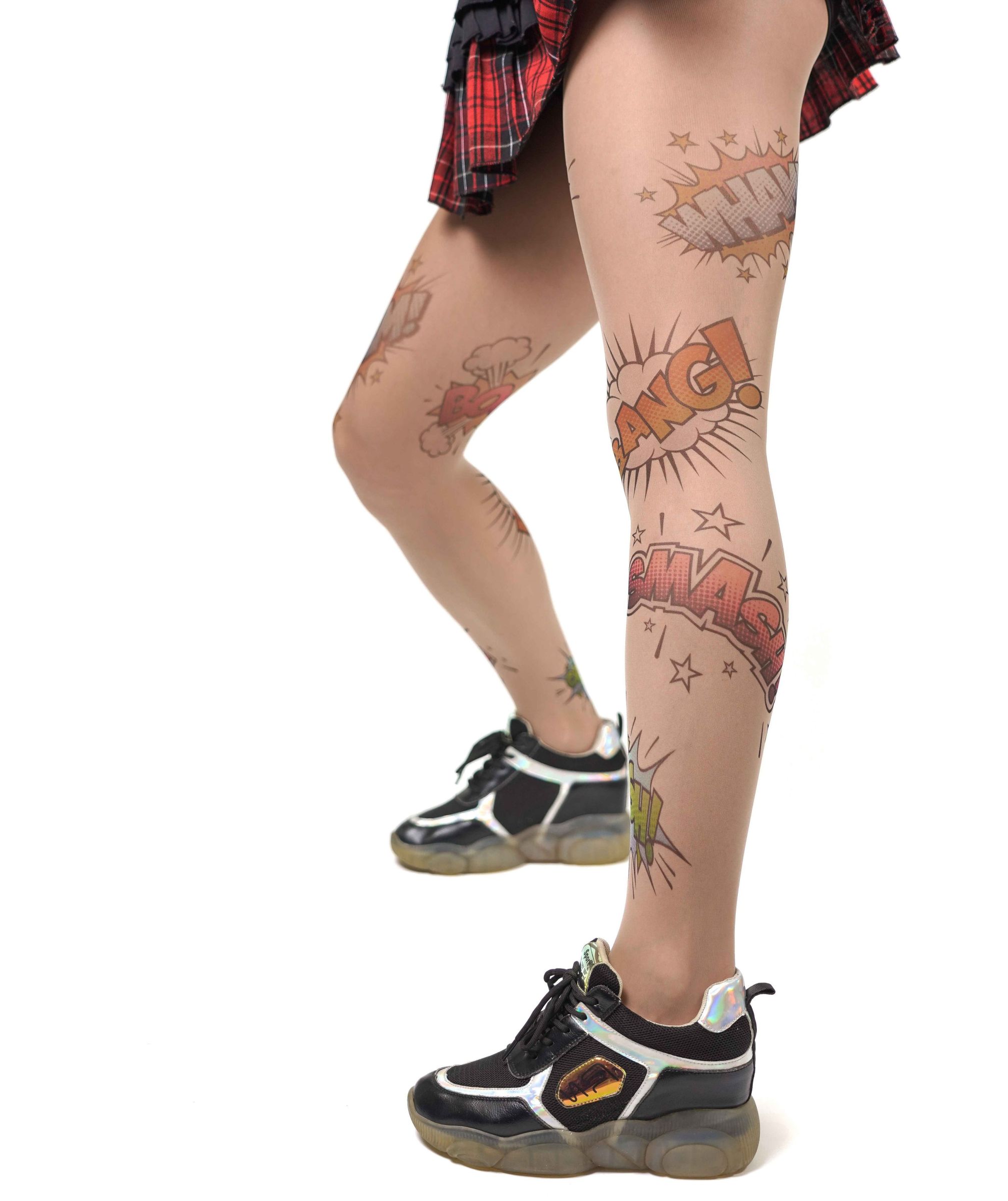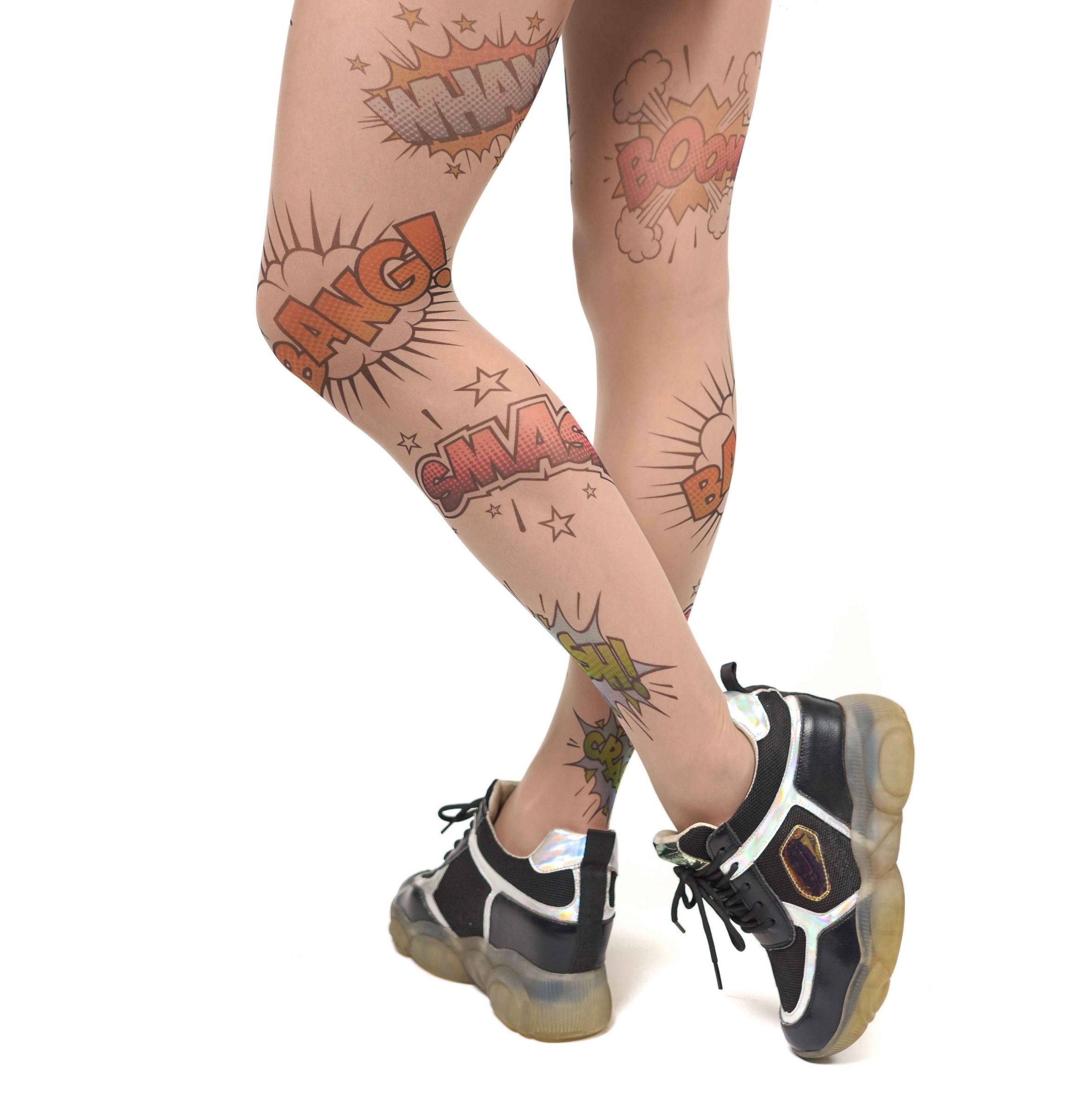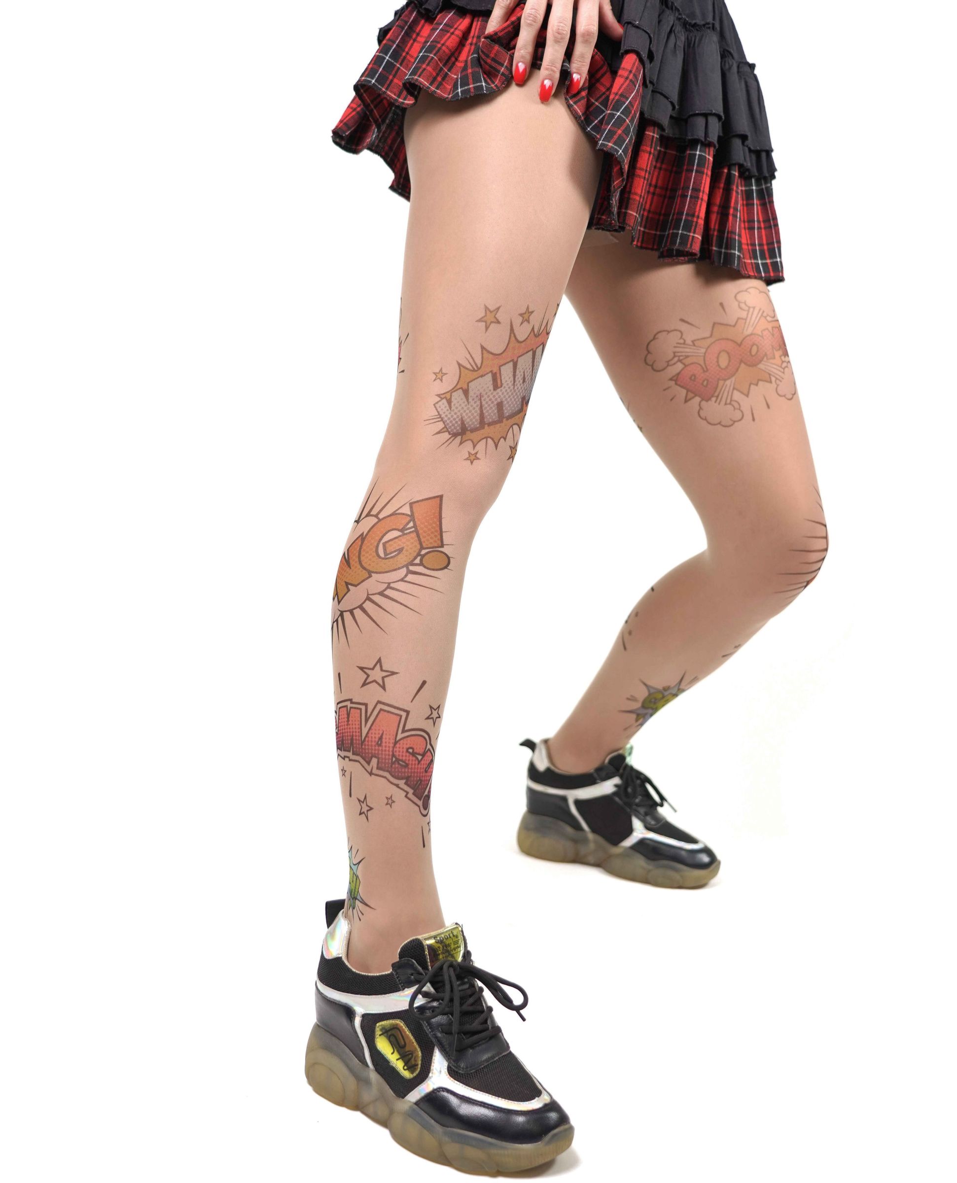 Колготки с принтом в виде цветных спич-баббл. Принт не стирается, не выгорает со временем. Можно стирать в стиральной машине. Крепкие, подойдут на рост от 145 до 180 см. Плотность - 40 ден.