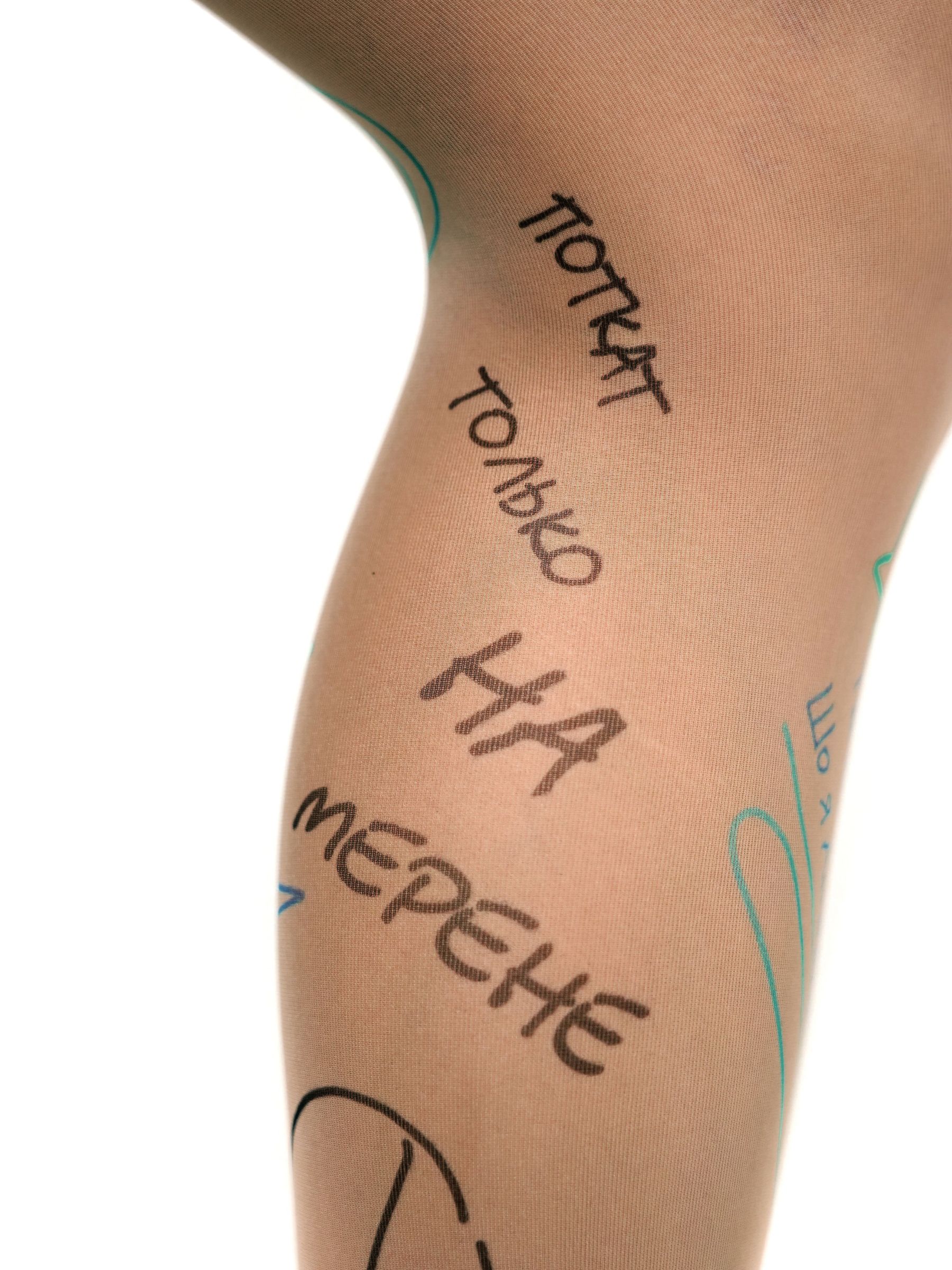 Молодёжные колготки с цветными почеркушками. Принт не стирается, не выгорает со временем. Можно стирать в стиральной машине. Крепкие, подойдут на рост от 145 до 180 см. Плотность - 40 ден.