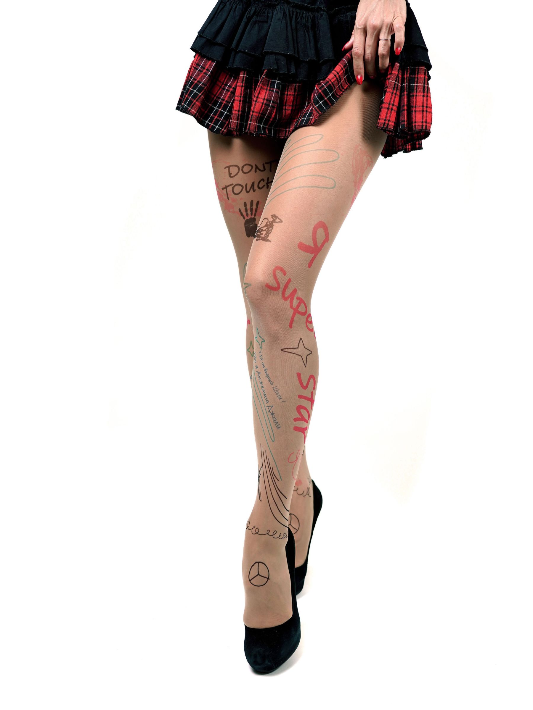 ОписаниеМолодёжные колготки с цветными почеркушками. Принт не стирается, не выгорает со временем. Можно стирать в стиральной машине. Крепкие, подойдут на рост от 145 до 180 см. Плотность - 40 ден.