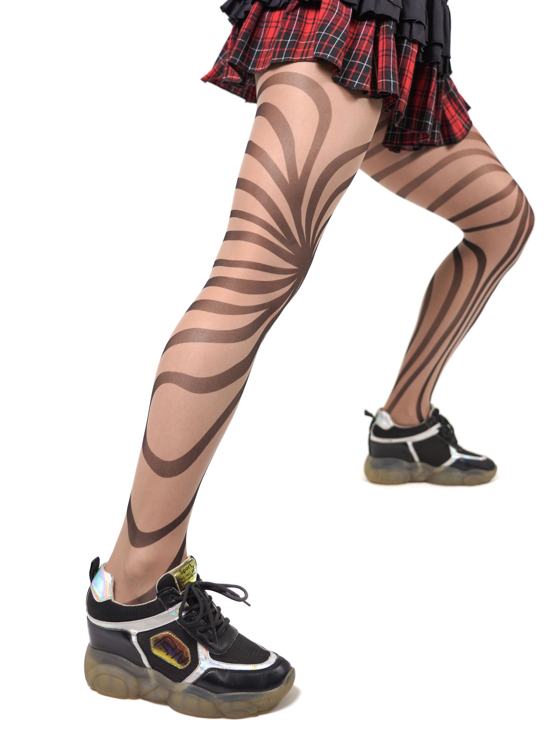 Колготки с крупным радиальным принтом. Принт не стирается, не выгорает со временем. Можно стирать в стиральной машине. Крепкие, подойдут на рост от 145 до 180 см. Плотность - 40 ден.
