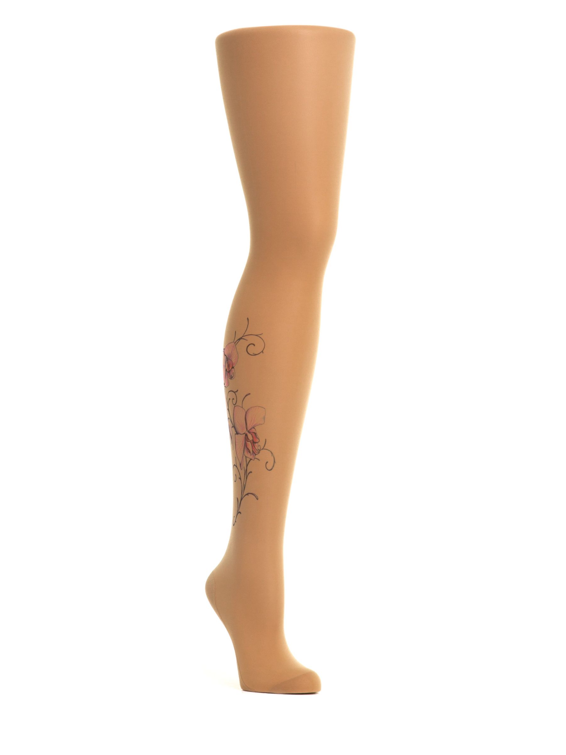 Колготки с принтом в виде розовой орхидеи на правой ножке