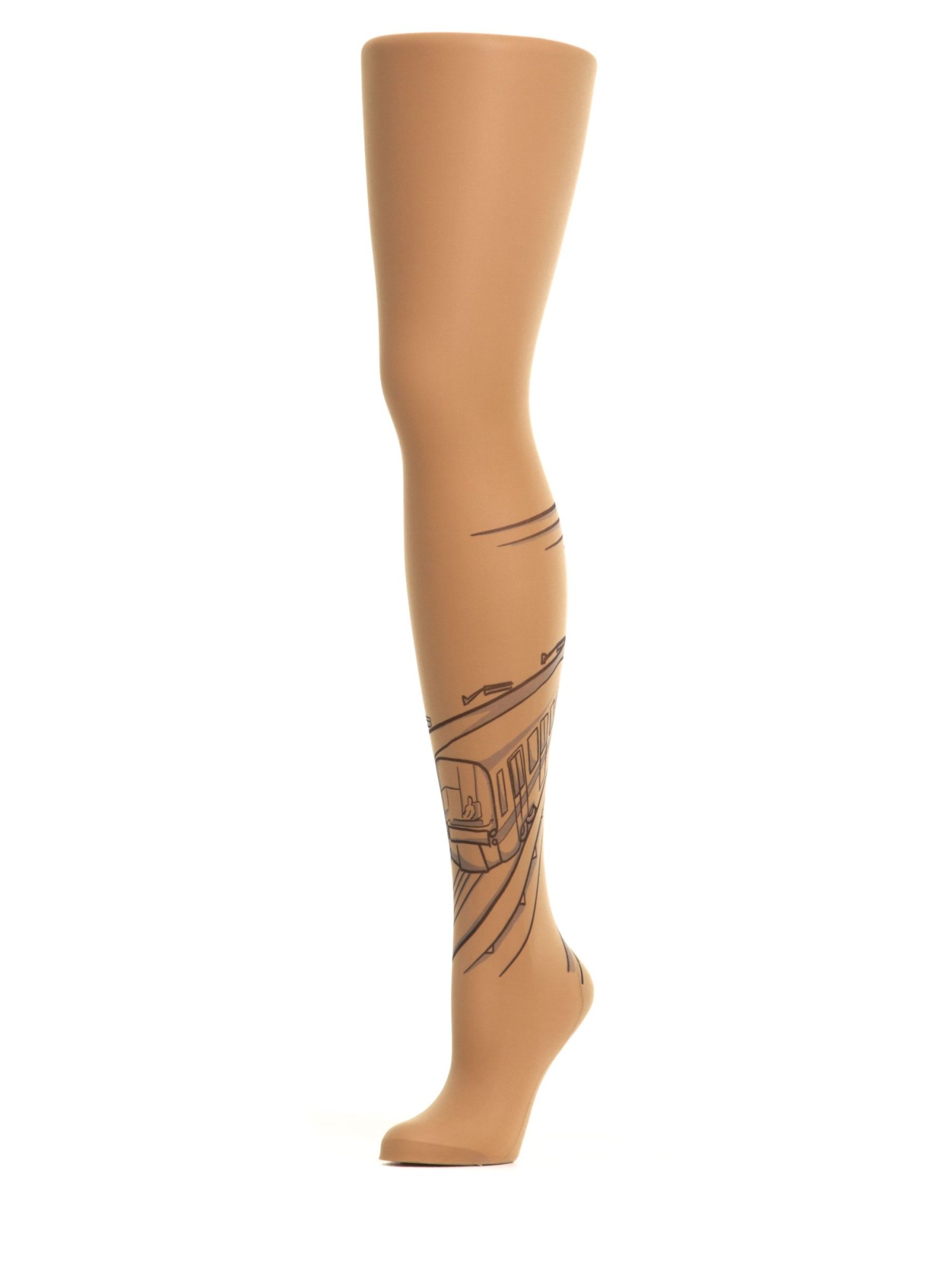 Колготки с принтом в виде метро на левой ножке