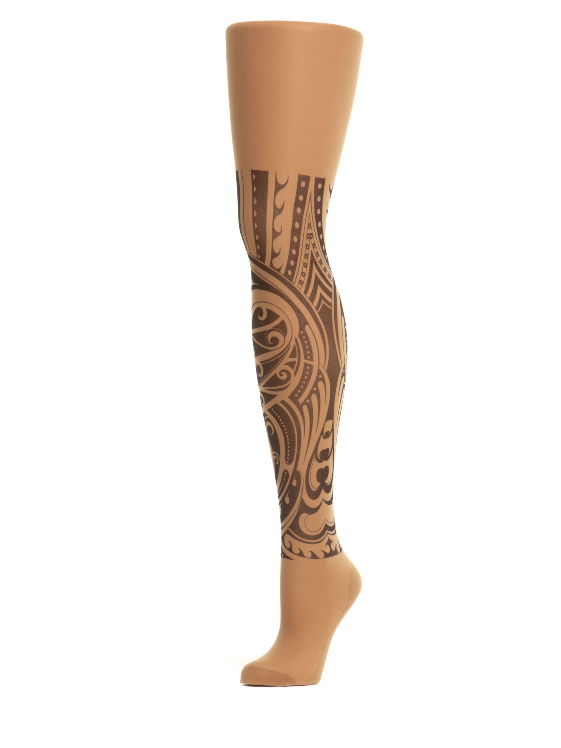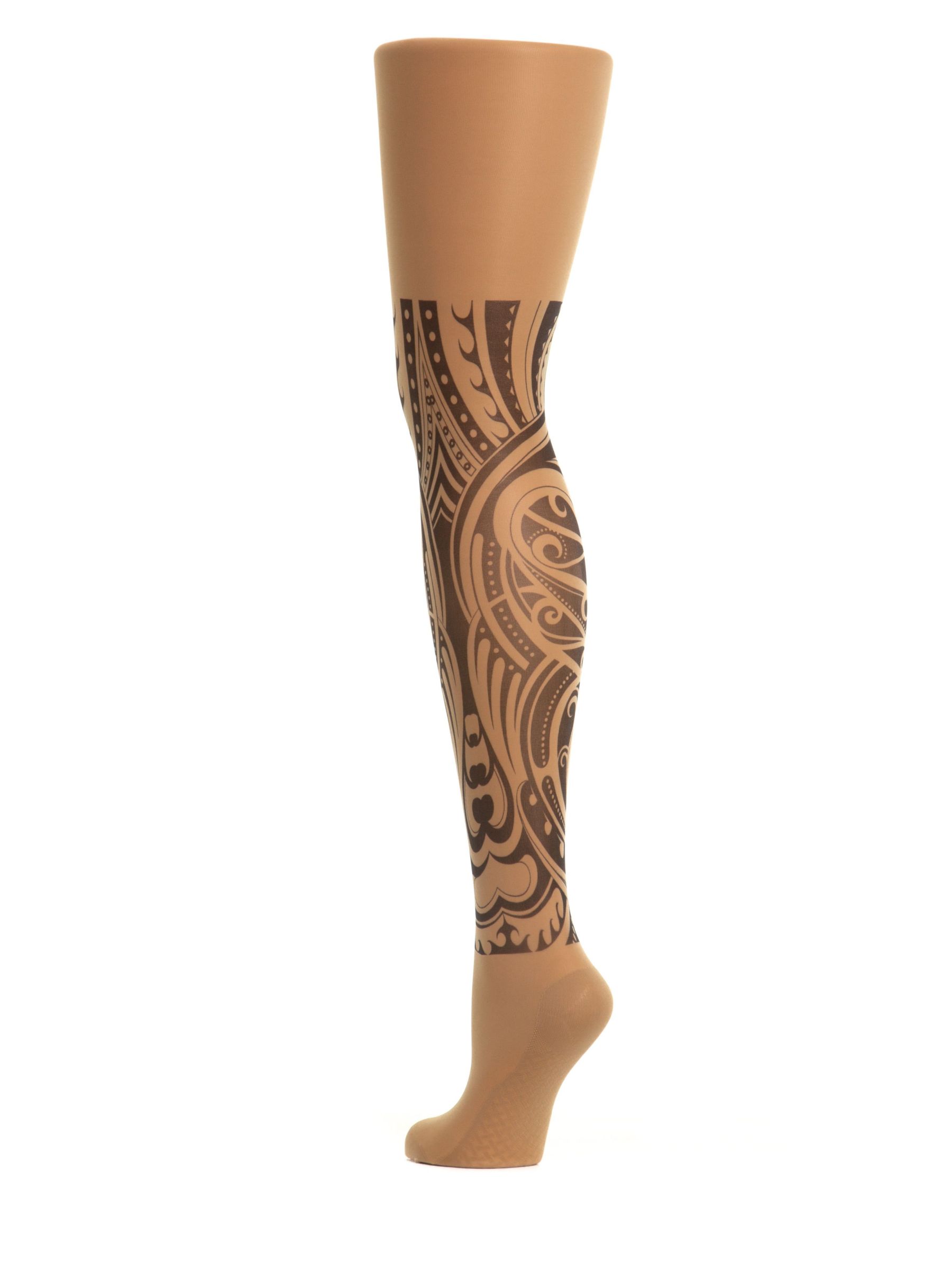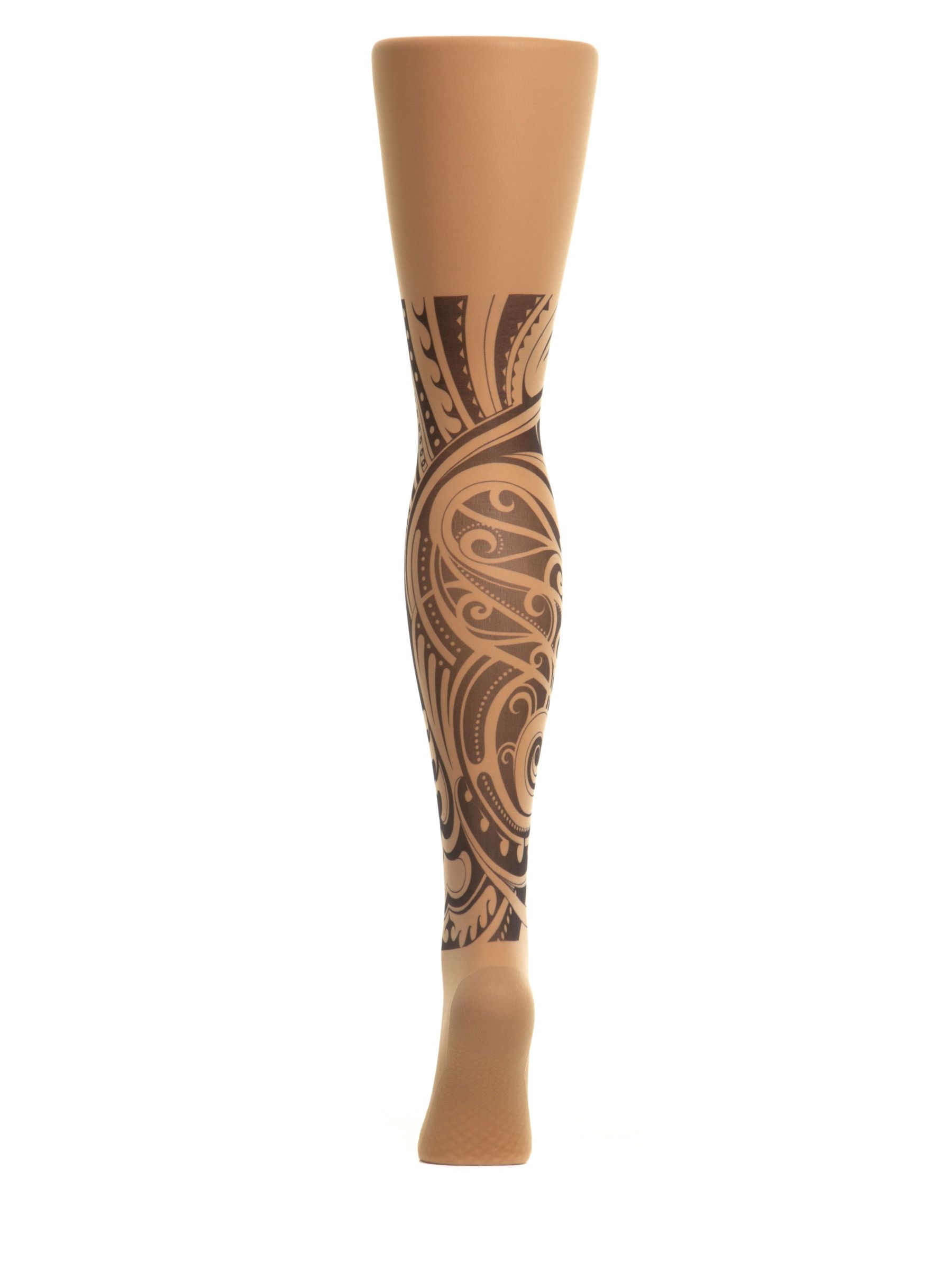 Колготки с имитацией большой татуировки на левой ножке - lovestoryshop.ru