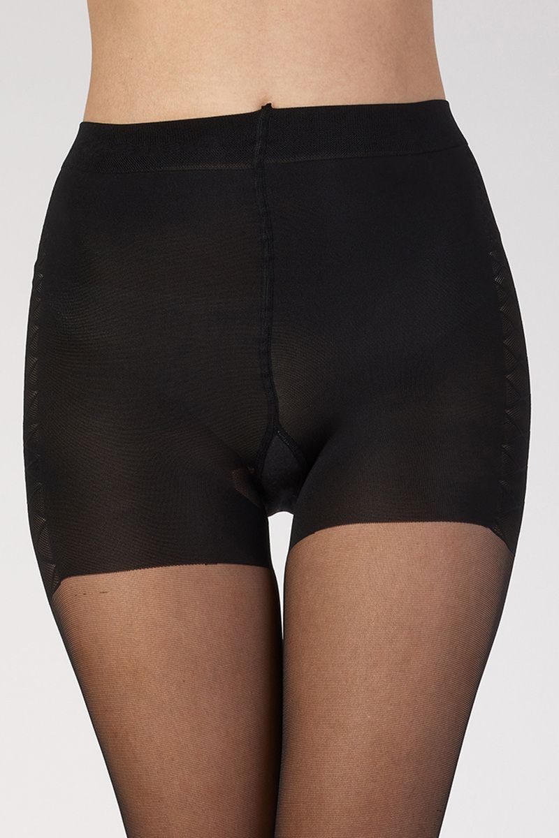 ОписаниеКолготки с утяжкой живота и бедер полностью сформированные, шортики украшены боковым плетением, имитирующим шнуровку, красивое плетение, плоский шов, ластовица из хлопка . Плотность - 15 ден.