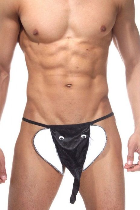 Игровые трусы-стринги для мужчин черного цвета с низкой посадкой, со слоном. Трусы на тонкой резинке, хорошо тянутся.