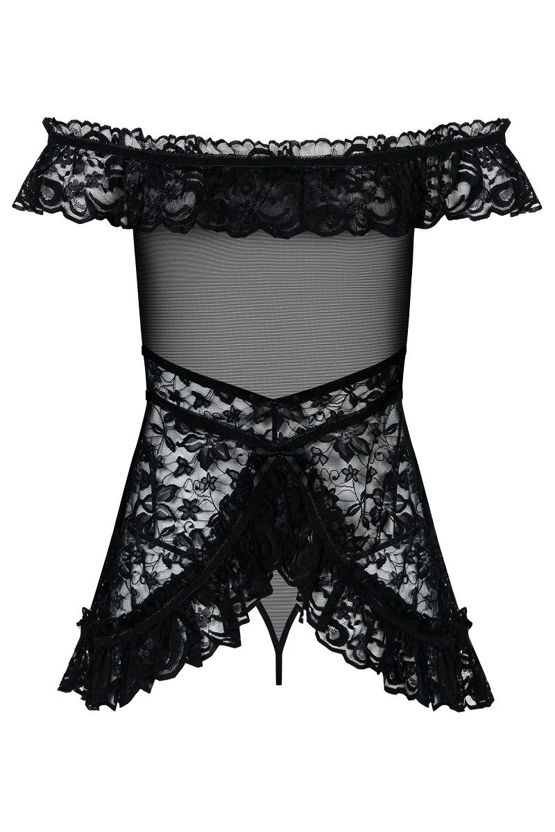 ОписаниеСорочка из цветочного кружева Flores с пышными оборками. В комплекте: сорочка, трусики-стринги.