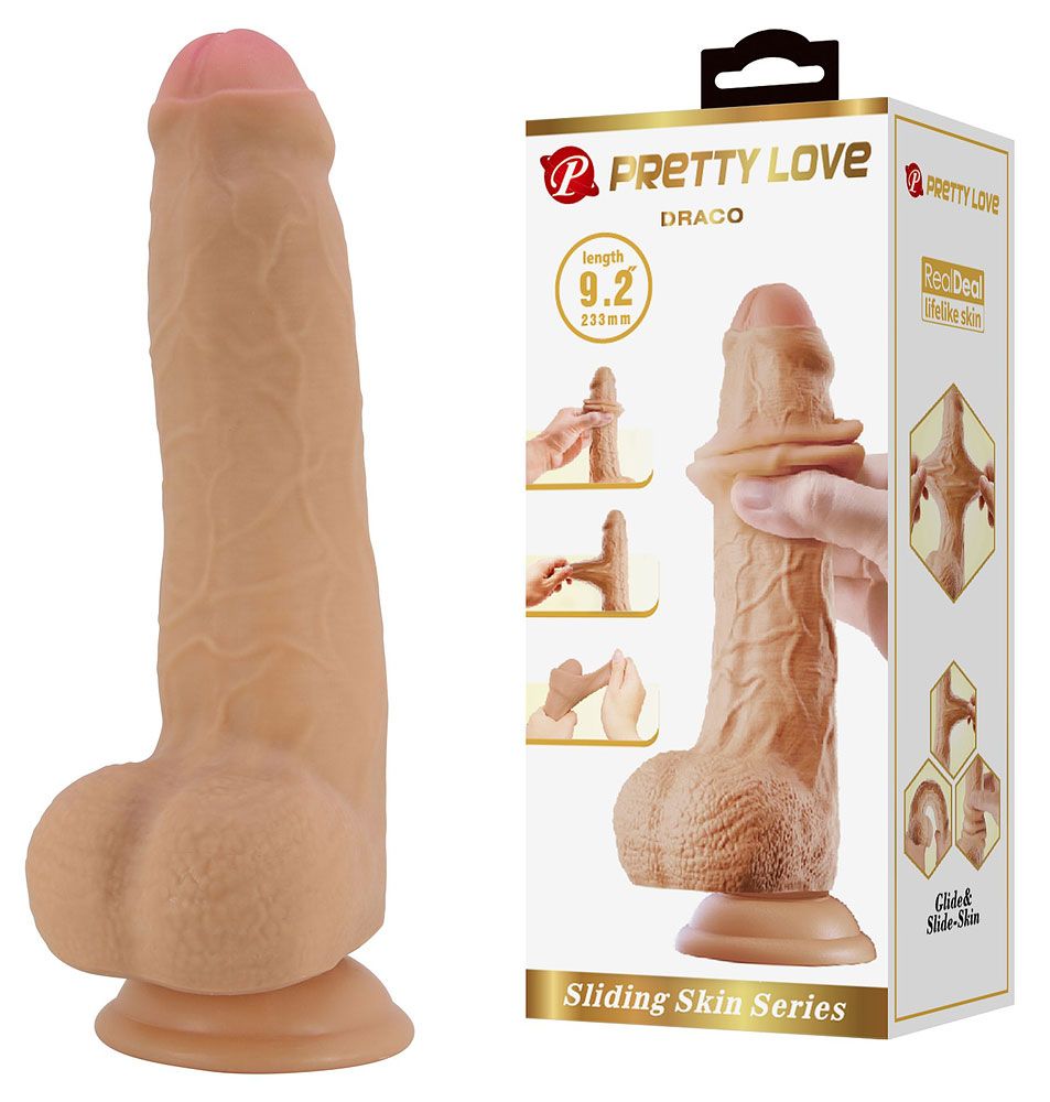 Телесный фаллоимитатор с подвижной кожей Draco - 23,3 см.