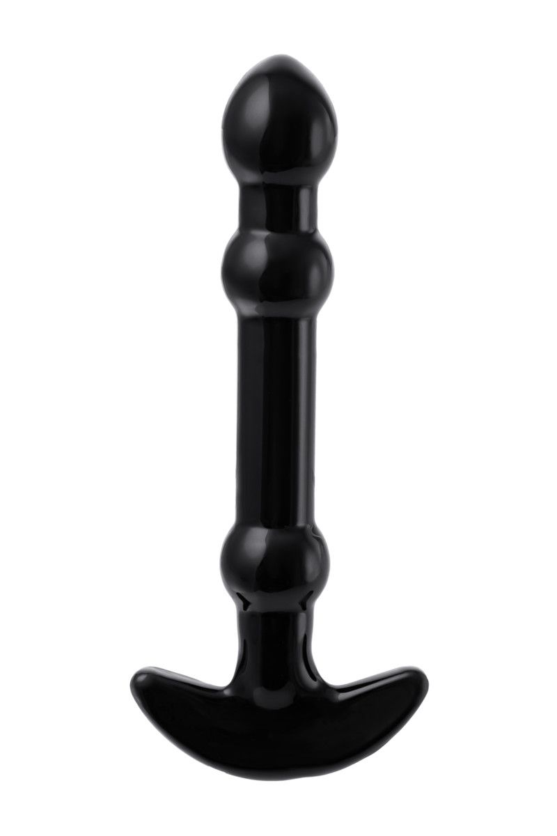 Элегантный чёрный анальный стимулятор с шариками на стволе - 19 см.