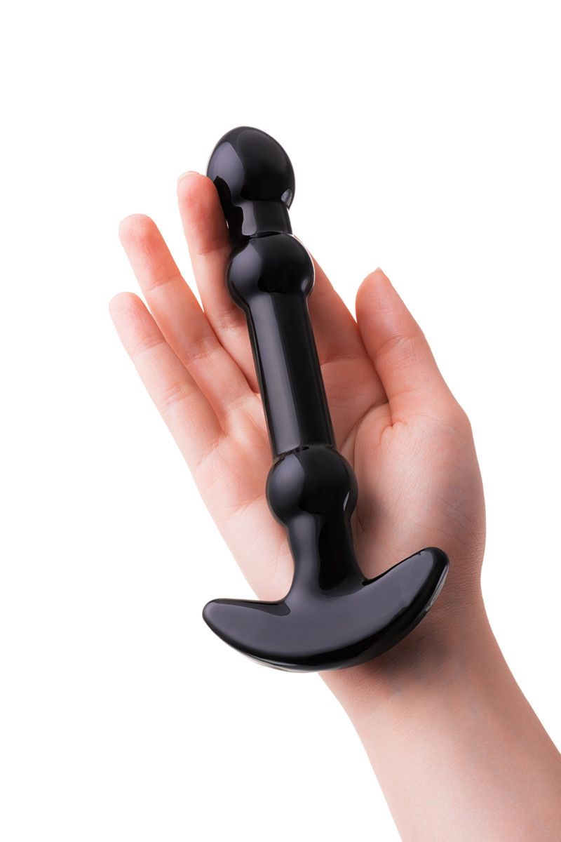 Элегантный чёрный анальный стимулятор с шариками на стволе - 19 см.