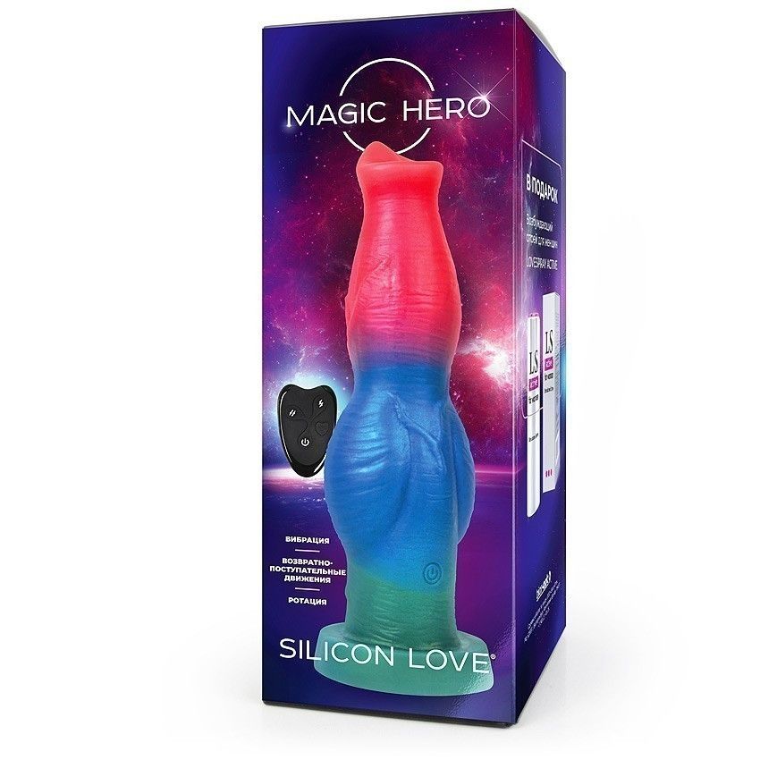 Цветной фантазийный вибратор с возвратно-поступательными движениями и ротацией - 26 см.