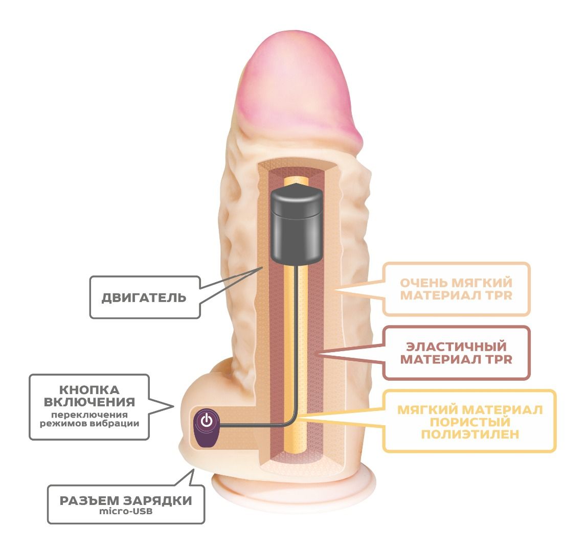 Телесный вибромассажер-супергигант - 33,5 см. - lovestoryshop.ru