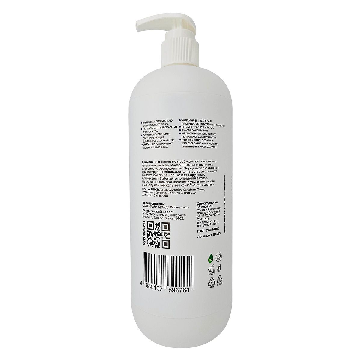 Расслабляющий анальный лубрикант с аллантоином LUBLab 1000 мл