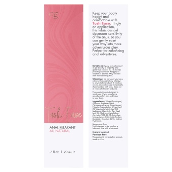 Анальный крем CG Tush Tease имеет нежную текстуру и безопасный состав без бензокаина, поэтому действует он без онемения, а мягко подготавливает анус к приятным и безболезненным анальным практикам. Гель наносится непосредственно на внешнюю зону ануса за 15-20 минут до проникающего секса, чтобы лишь слегка уменьшить неприятные ощущения и подготовить к разнообразным анальным экспериментам. Можно использовать как с партнёром, так и с секс-игршками.
