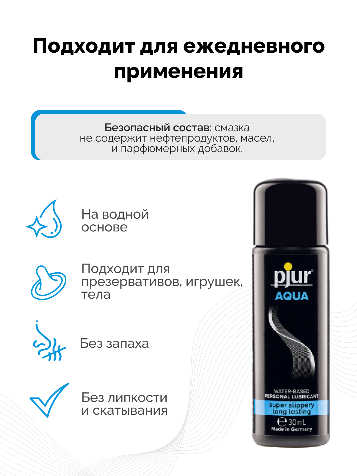 Все лубриканты, спреи и гели Pjur разрабатываются и производятся в Германии.