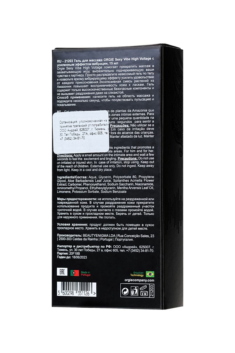 Гель с усиленным эффектом вибрации Orgie Sexy Vibe High Voltage 15 мл - lovestoryshop.ru