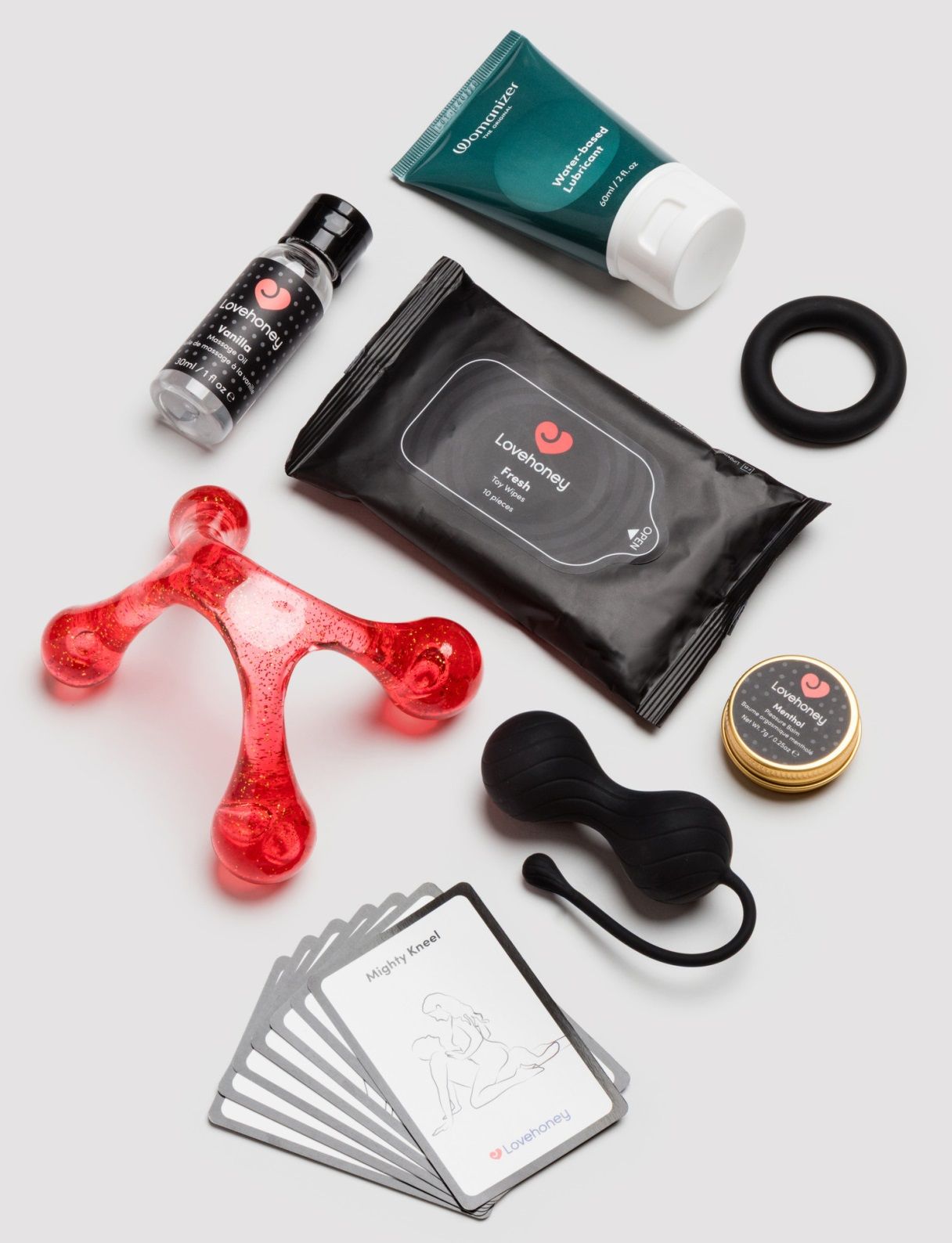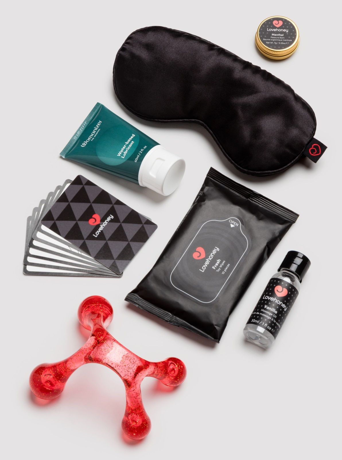 Комплектация: Вибратор-пуля с USB-зарядкой Lovehoney Bullet / Бесконтактный стимулятор клитора Womanizer Classic 2 / Вибратор для пар We-Vibe Sync Lite / Гель для секс-игрушек Womanizer / Влажные салфетки для очистки секс-игрушек / Фаллоимитатор для точки G, совместимый с вибропулей / Эрекционное кольцо / Маска для сна / Пальчиковый вибратор, совместимый с вибропулей / Ментоловый бальзам, 7 г / Наручники с карабином / Зажимы для сосков с бубенцами / Вибратор Mini Wand, совместимый с вибропулей / Фиксаторы для лодыжек / Пэддл (шлёпалка) / Эрекционное кольцо, совместимое с вибропулей / Массажер для тела / Мастурбатор, совместимый с вибропулей / Алюминиевая анальная пробка / Карточная игра / Вибратор-кролик, совместимый с вибропулей / Массажер простаты, совместимый с вибропулей / Тренажер Кегеля / Ремни для крепления бондажной системы под матрасом -