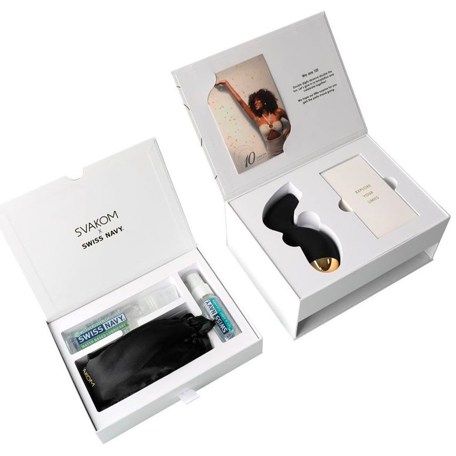 Бренд Svakom вместе со Swiss Navy создал специальный лимитированный набор с вакуумным стимулятором Pulse Pure и приятными дополнениями. В комплектацию входят: