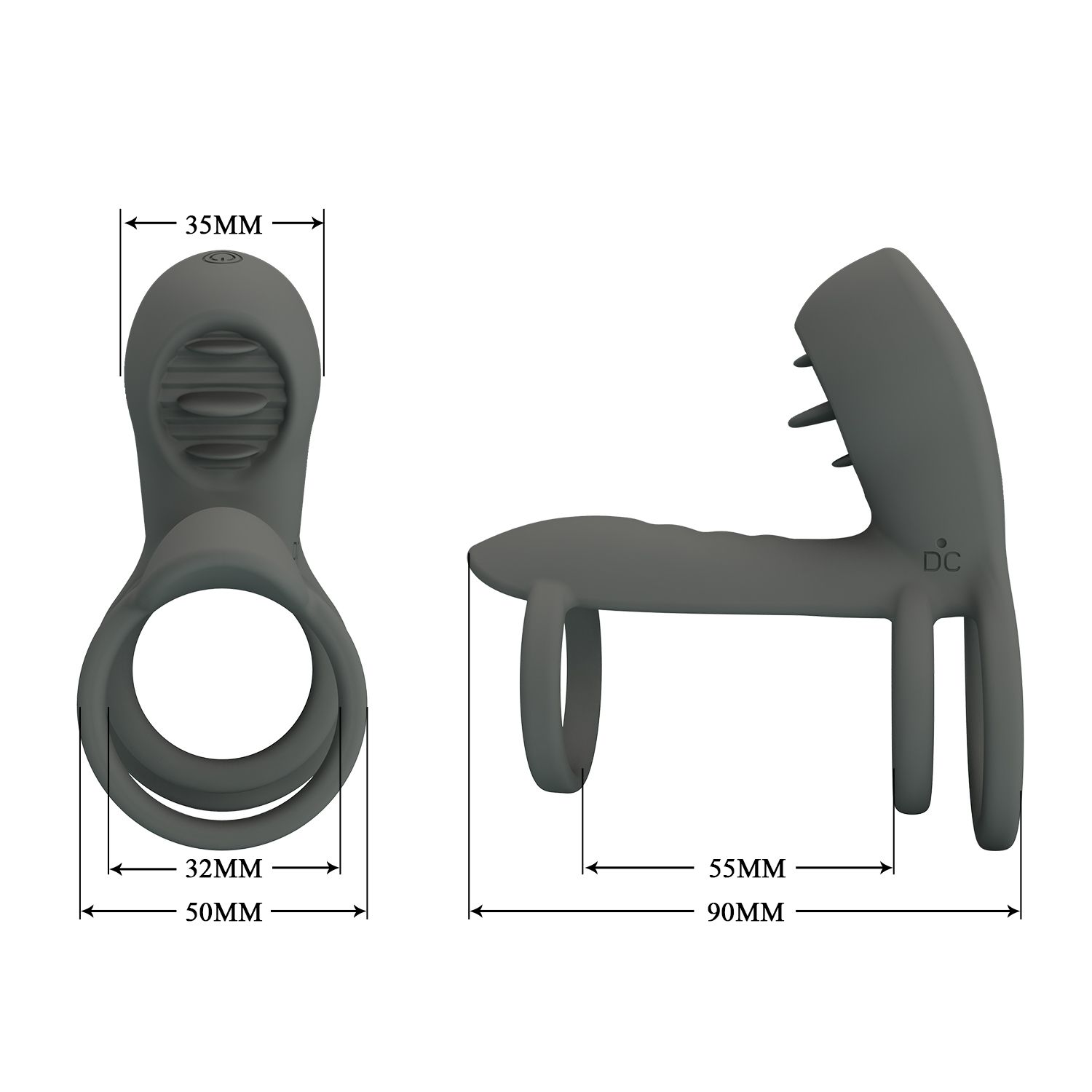 Серая насадка на пенис с 12 режимами вибрации