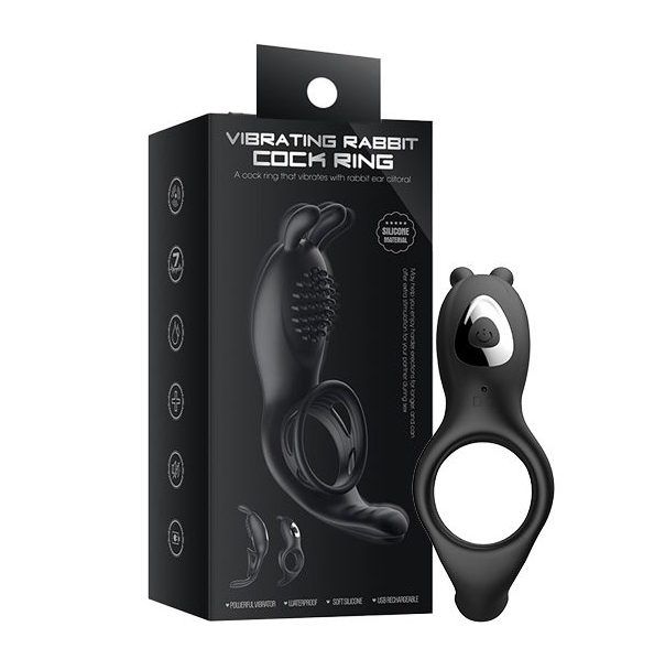 Черное эрекционное кольцо с вибрацией и пультом ДУ