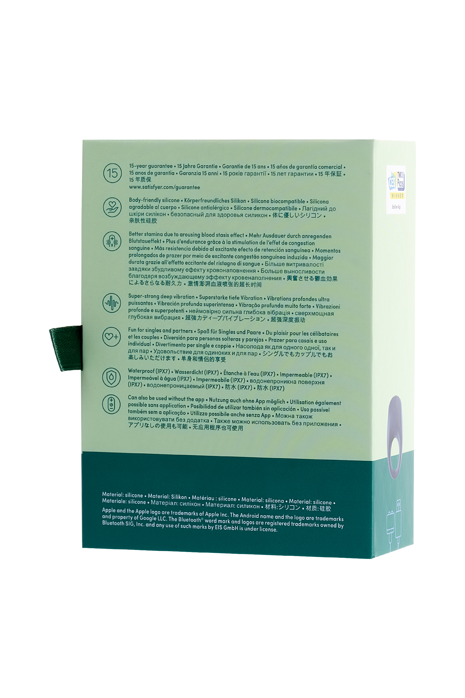 Satisfyer Strong One входит в новое поколение эрекционных колец от Satisfyer и порадует стильным дизайном, уверенной стимуляцией и дополнительным управлением от приложения Satisfyer Connect. В остальном это простой и понятный девайс для парного удовольствия: благодаря удачной форме мужчина получает плотный обхват члена и более долгую эрекцию, а довольно широкая и объёмная верхняя часть кольца подойдёт для стимуляции клитора партнёрши — ощущения от вибрации смогут оценить все участники процесса.