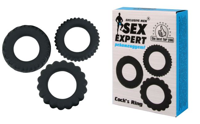 Набор из 3 рельефных эрекционных колец Sex Expert - lovestoryshop.ru