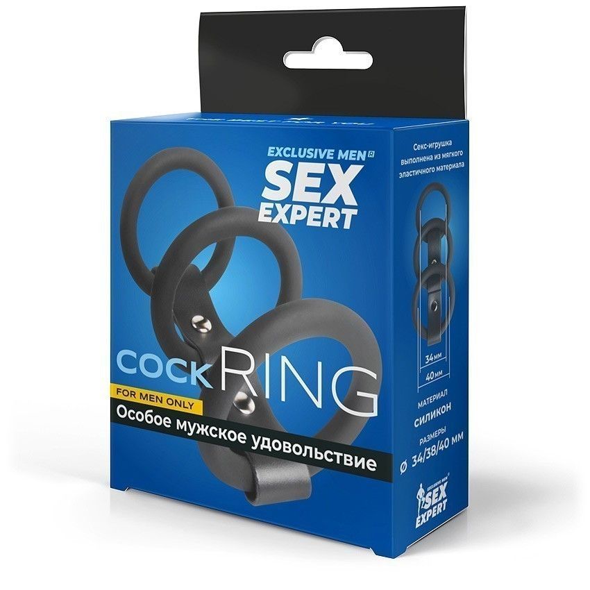 Оригинальная секс-игрушка для усиления эрекции, повышения чувствительности пениса и продления интимной близости. Изделие состоит из трёх эрекционных колец разного диаметра: два кольца надеваются на половой член, третье – на мошонку. Все кольца соединены прочным ремешком. Интимный аксессуар изготовлен из мягкого эластичного материала. Хорошо растягивается, дарит приятные тактильные ощущения. Подходит для пенисов разных размеров. Диаметр колец - 3,4, 3,8 и 4 см.