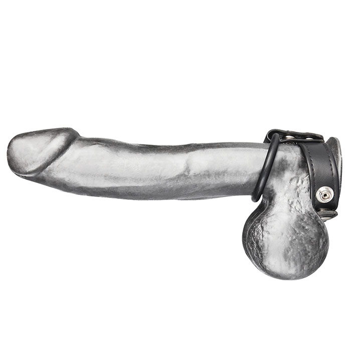 Это двойное эрекционное кольцо из искусственной кожи для утяжки пениса и мошонки, стимулирующее эрекцию, добавляющее толщину и способствующее увеличению размера полового члена.