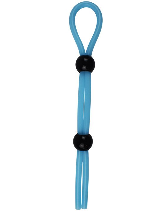 Голубое эрекционное лассо с двумя утяжками - 20 см.