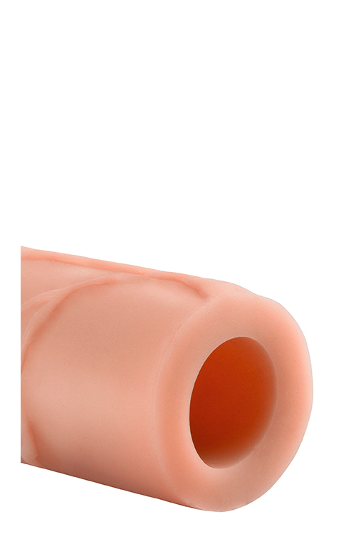 Реалистичная насадка с выделяющимися венами, складками, ярко выраженной головкой. Изготовлена из супер-эластичного Fanta Flesh материала. Материал не содержит фталатов. Подходит для большинства размеров. Увеличивает диаметр (даёт в среднем 66% увеличения в диаметре от исходных параметров) и увеличивает длину на 2,5 см. Легко обрезается у основания для идеальной подгонки под индивидуальные параметры.