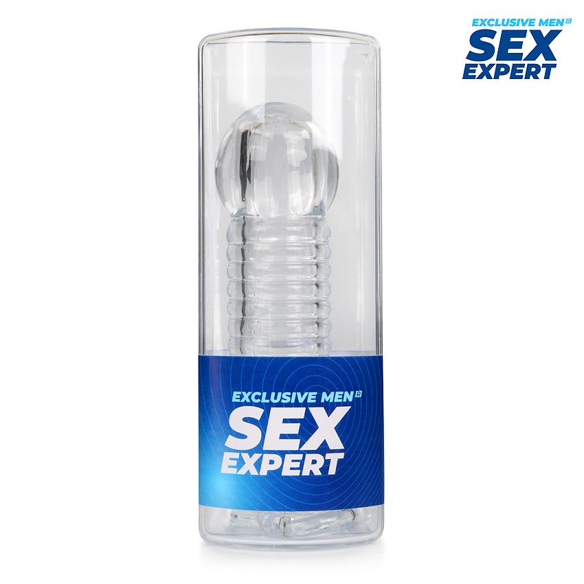 Прозрачная рельефная насадка-реалистик с петлей для мошонки - 13,5 см.
