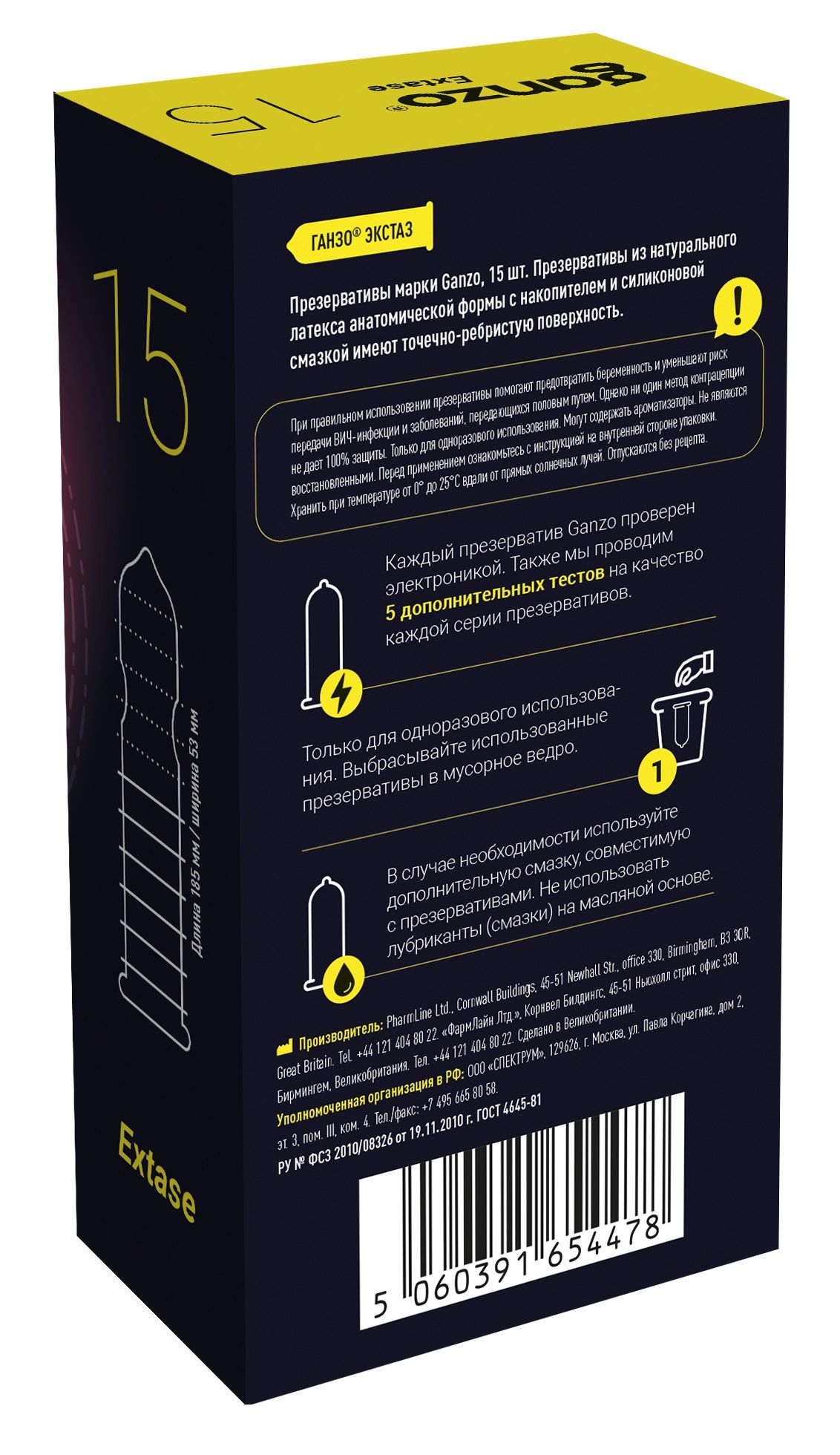 Презервативы Ganzo Extase с точечной и ребристой поверхностью 15 шт - lovestoryshop.ru