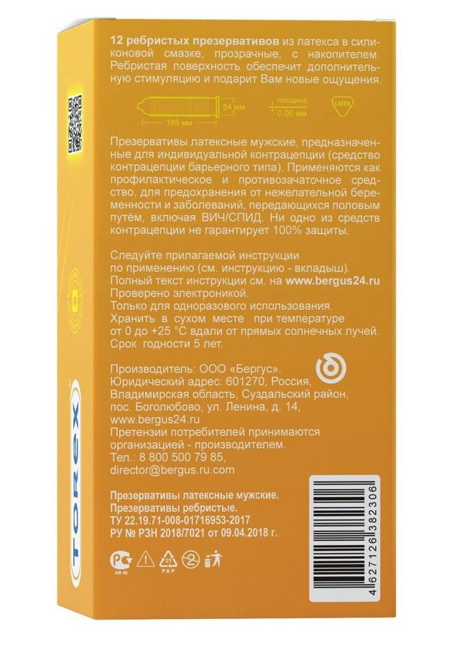 Текстурированные презервативы Torex Ребристые - 12 шт.