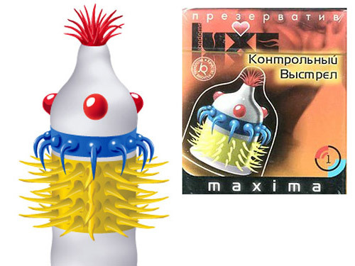 Необычный презерватив Luxe maxima Контрольный выстрел доставит незабываемое удовольствие женщине, ведь в нем есть целых 3 дополнения. Пучок красных усиков на накопителе приятно стимулирует при глубоком проникновении, синие шарики ласкают при каждом движении, а красно-жёлтый ободок эластичных усиков, направленных в разную сторону, создает волны мурашек по всему телу.