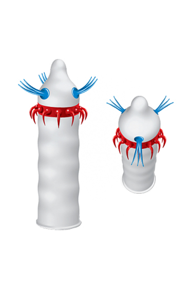 Необычный презерватив Luxe exclusive Летучий голландец доставит незабываемое удовольствие женщине, ведь в нем есть целых 2 дополнения. Голубые пучки усиков ближе к головке приятно стимулируют и поглаживают, а красный ободок эластичных кончиков, направленных в противоположную сторону движения, создает волны мурашек по всему телу.