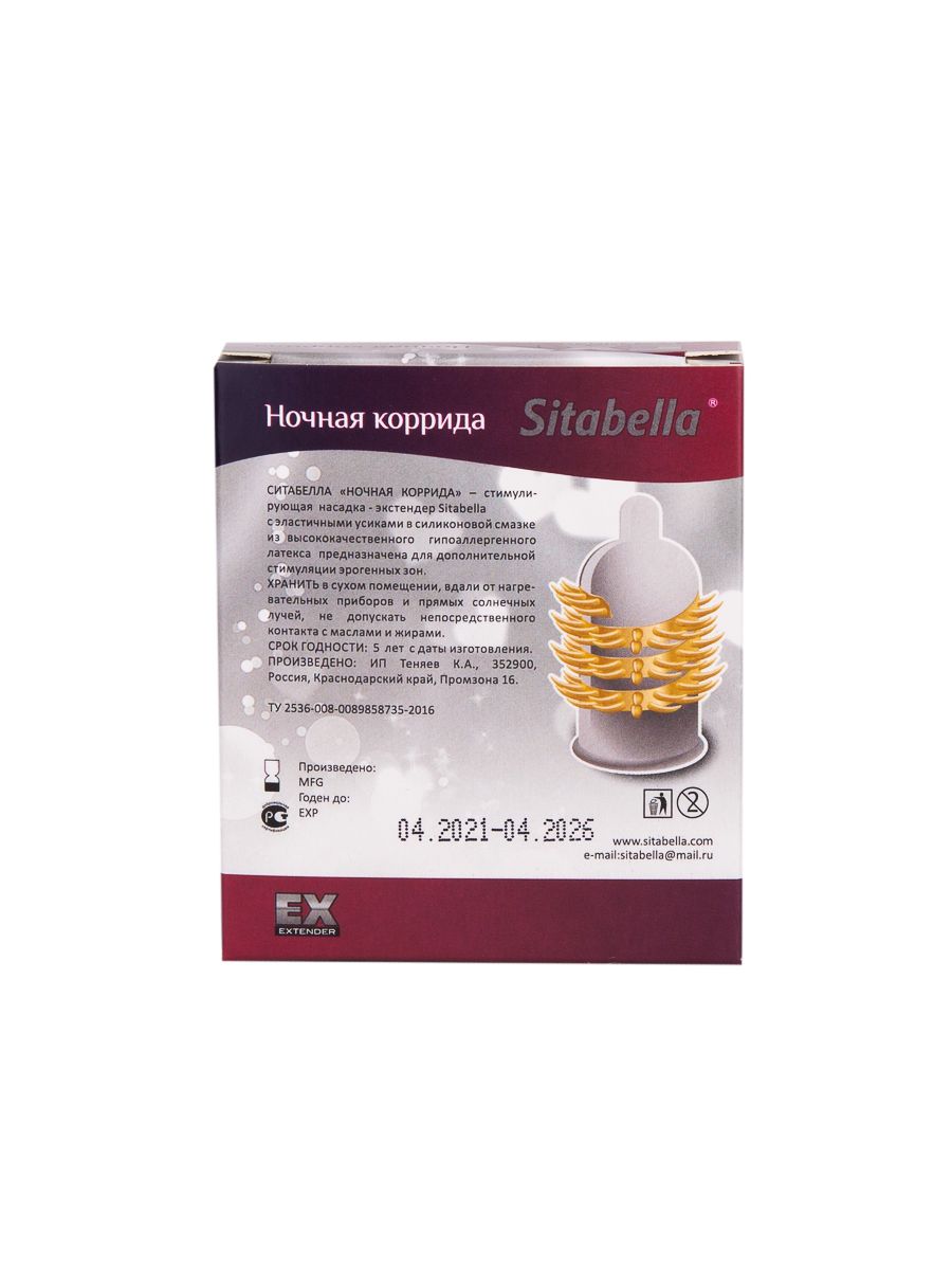 ОписаниеСтимулирующая насадка Sitabella Extender Ночная коррида . С эластичными усиками.