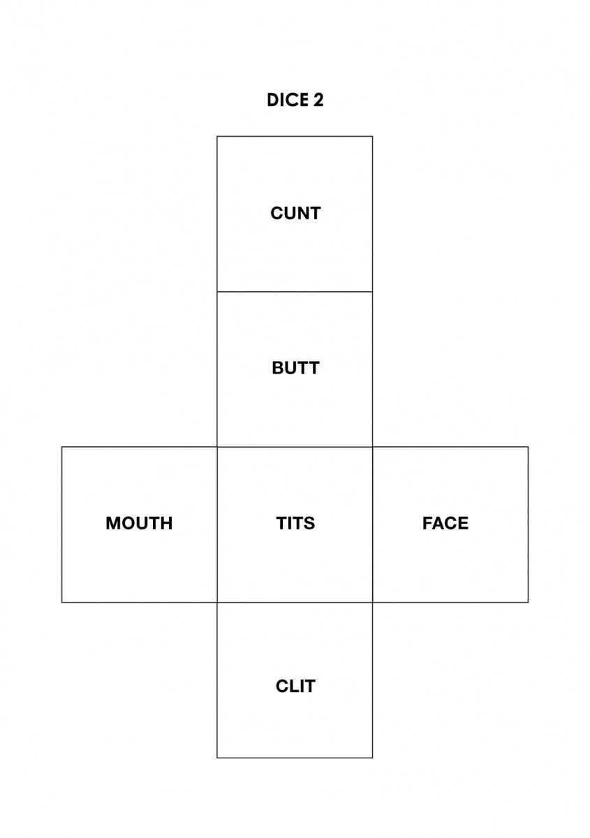 Kink Dice - игральные кости для эротической игры. В комплект входят два кубика, на которых указаны части тела. Правила простые. Игроки кидают два кубика и выполняют выпавшую комбинацию.