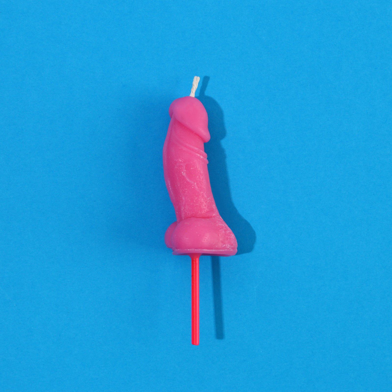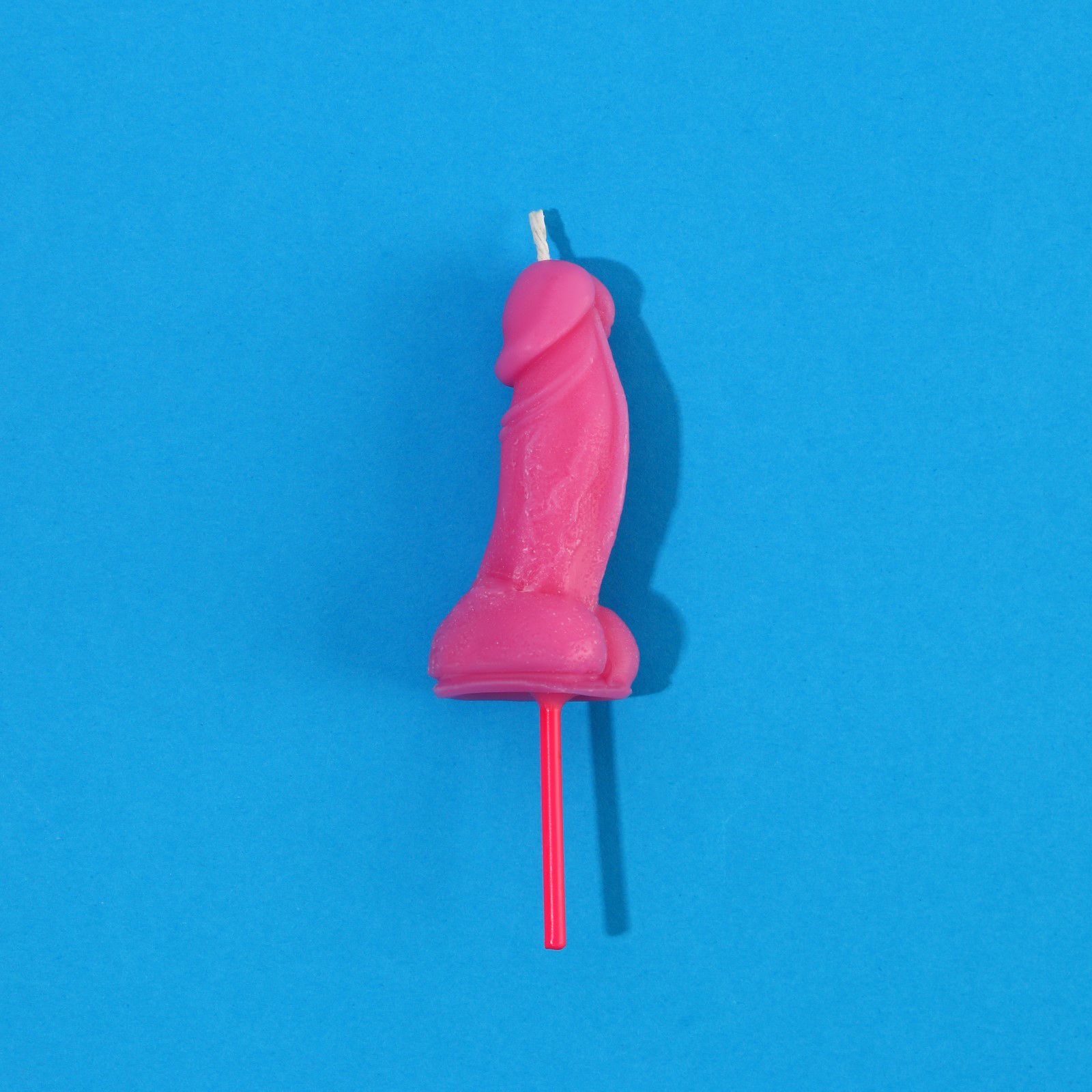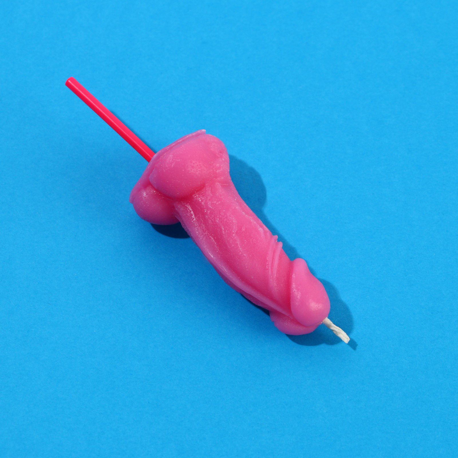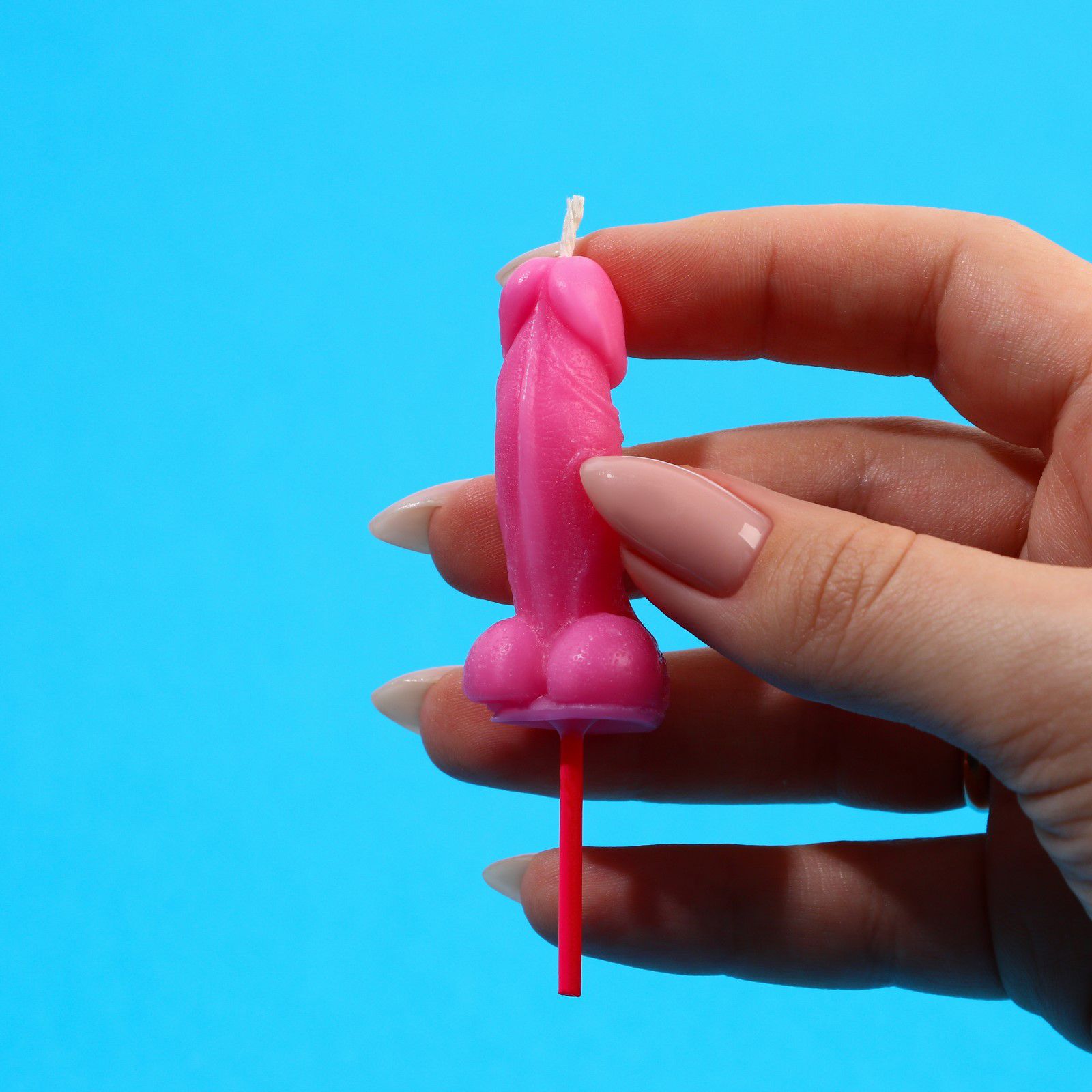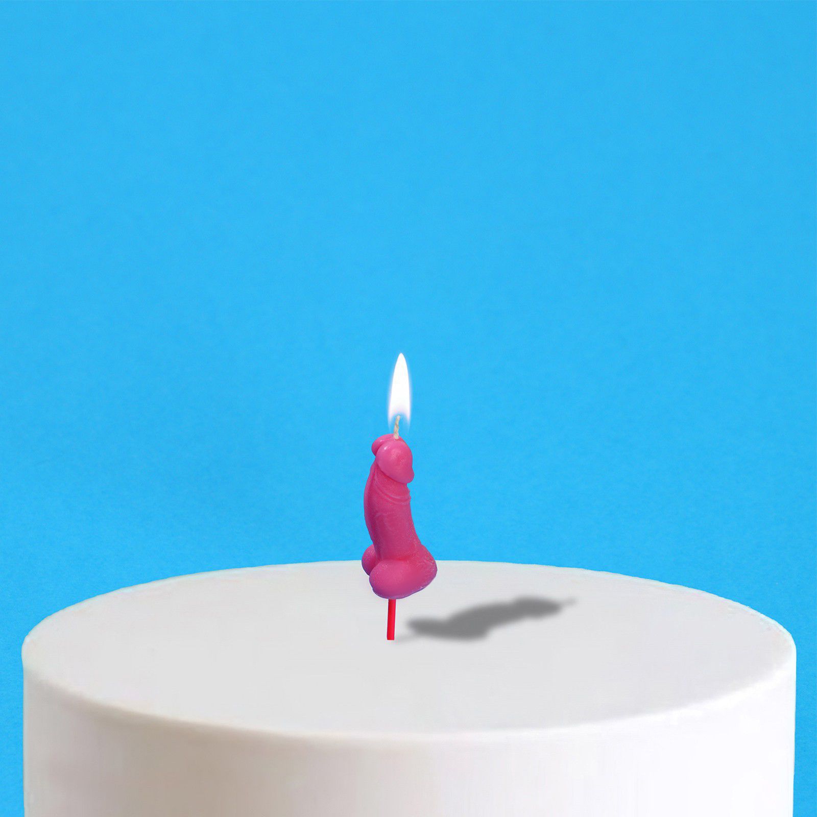 Розовая свеча на торт в форме фаллоса - 4,5 см.