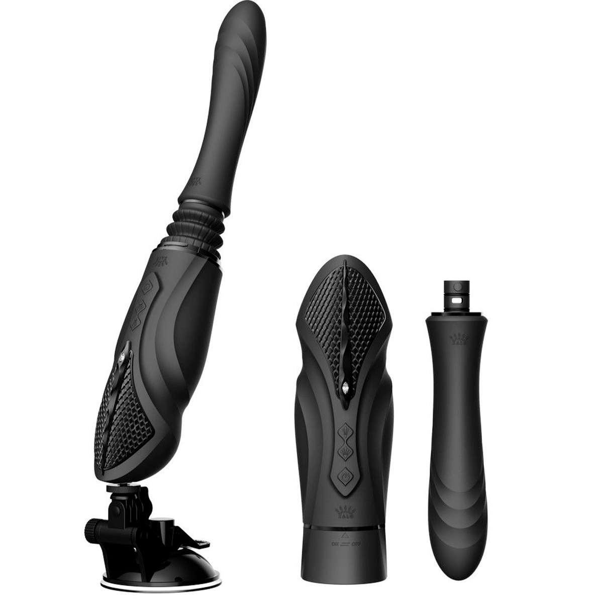 Черная секс-машина с функцией нагрева, насадками и присоской Sesh - lovestoryshop.ru