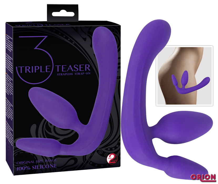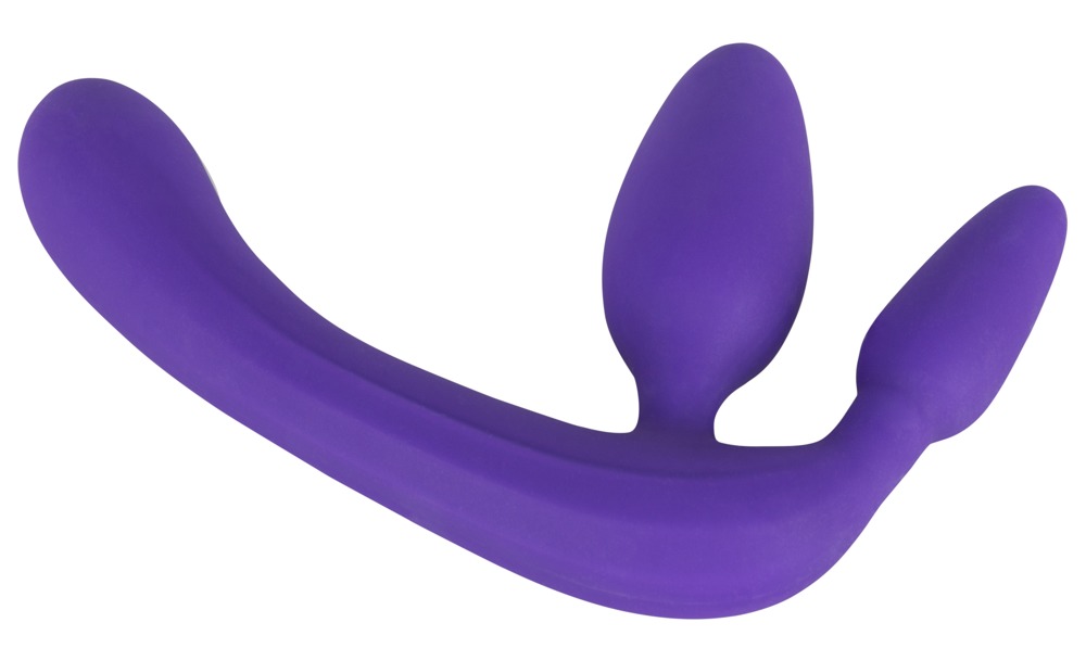 Фиолетовый безремневой страпон с двумя пробками Triple Teaser