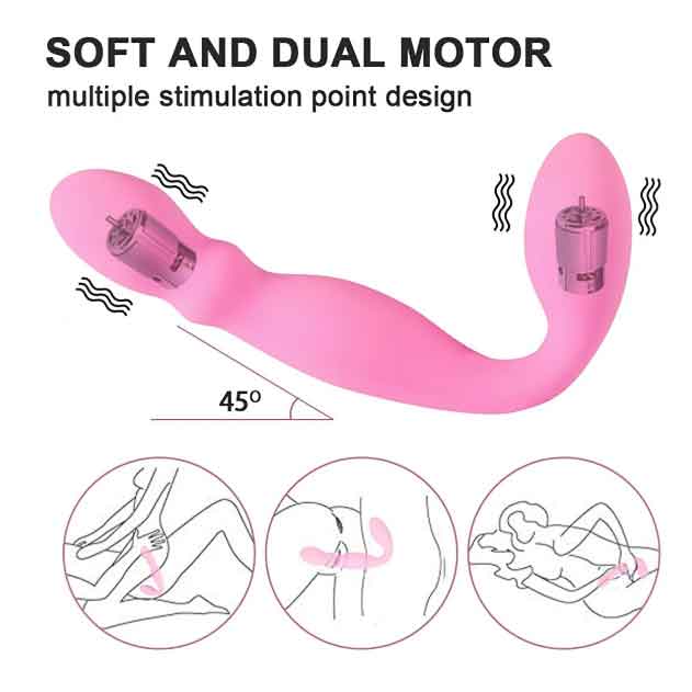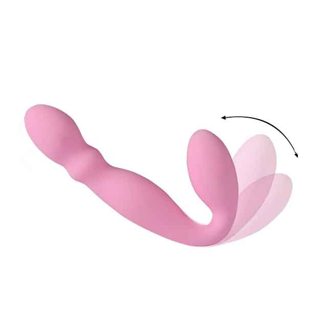 Розовый безремневой вибрострапон. Имеет 11 режимов вибрации. Виброэлементы расположены в обеих частях игрушки.