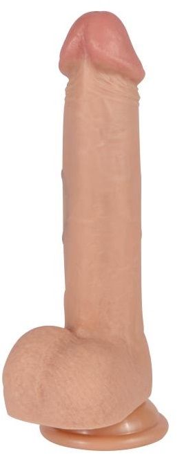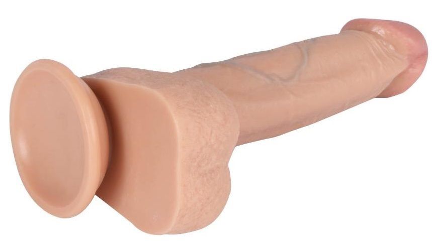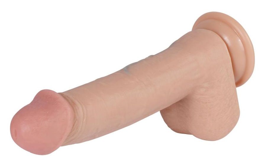 Реалистичный фаллоимитатор Real с мошонкой на присоске и трусиками для страпона- 23 см