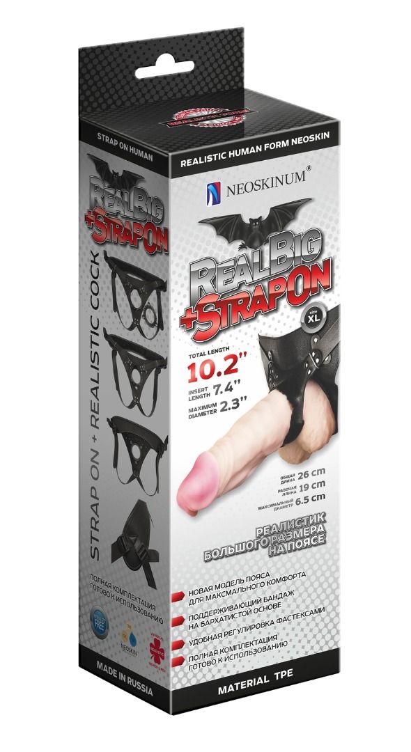 Гигантский фаллоимитатор на присоске в комплекте с трусиками - 26 см.