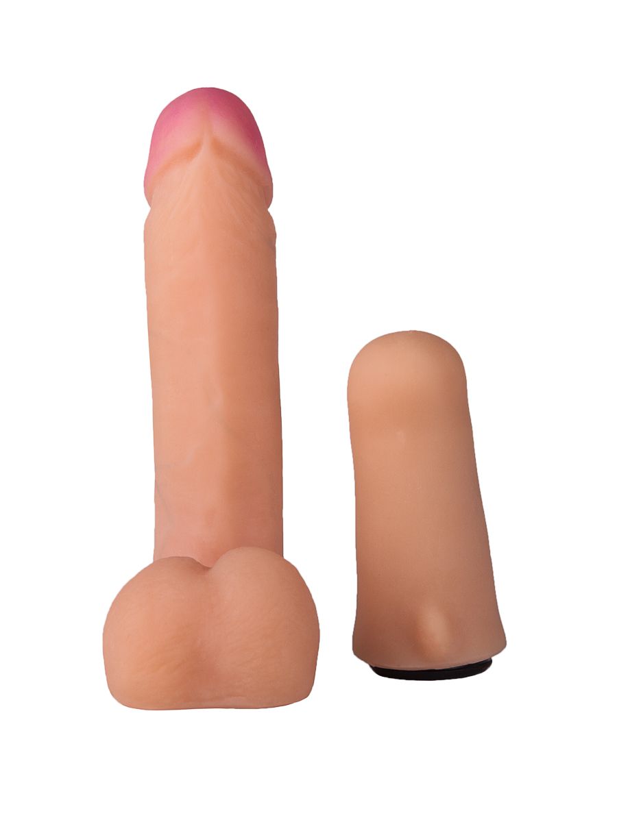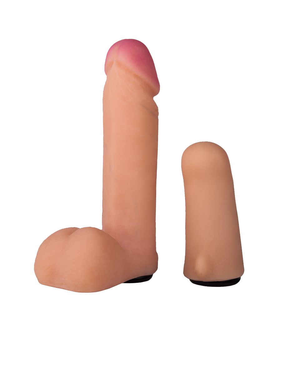 Женский страпон с реалистичной насадкой и вагинальной пробкой - 16 см.