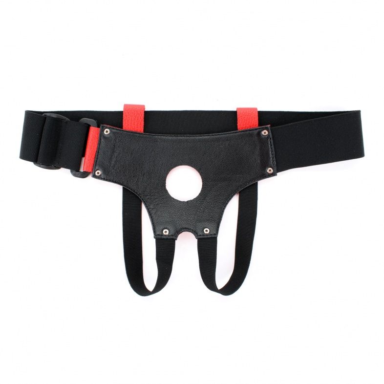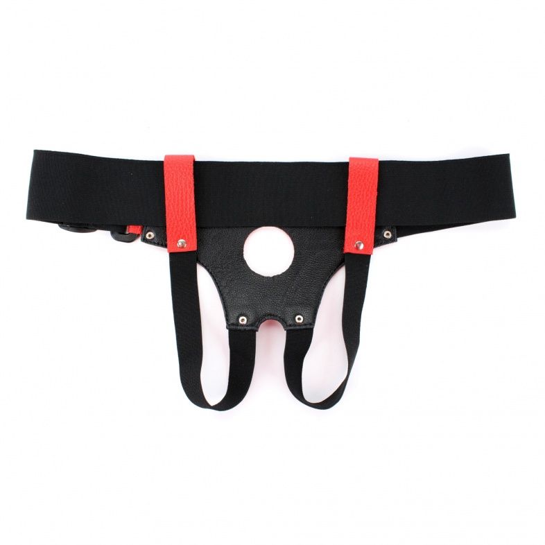 Красно-черные кожаные трусики для насадок - lovestoryshop.ru